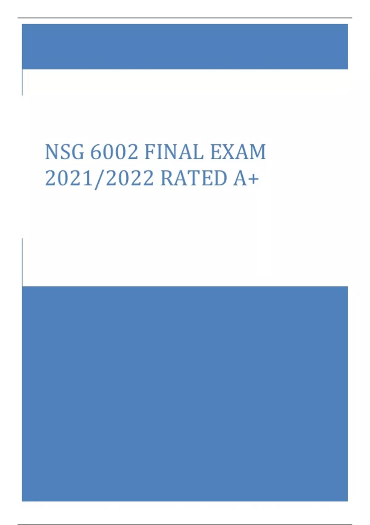 NSG 6002 Final Exam latest 2021 RATED A+ NSG 6002 Final Exam latest 2021 RATED A+ NSG 6002 Final Exam latest 2021 RATED A+
