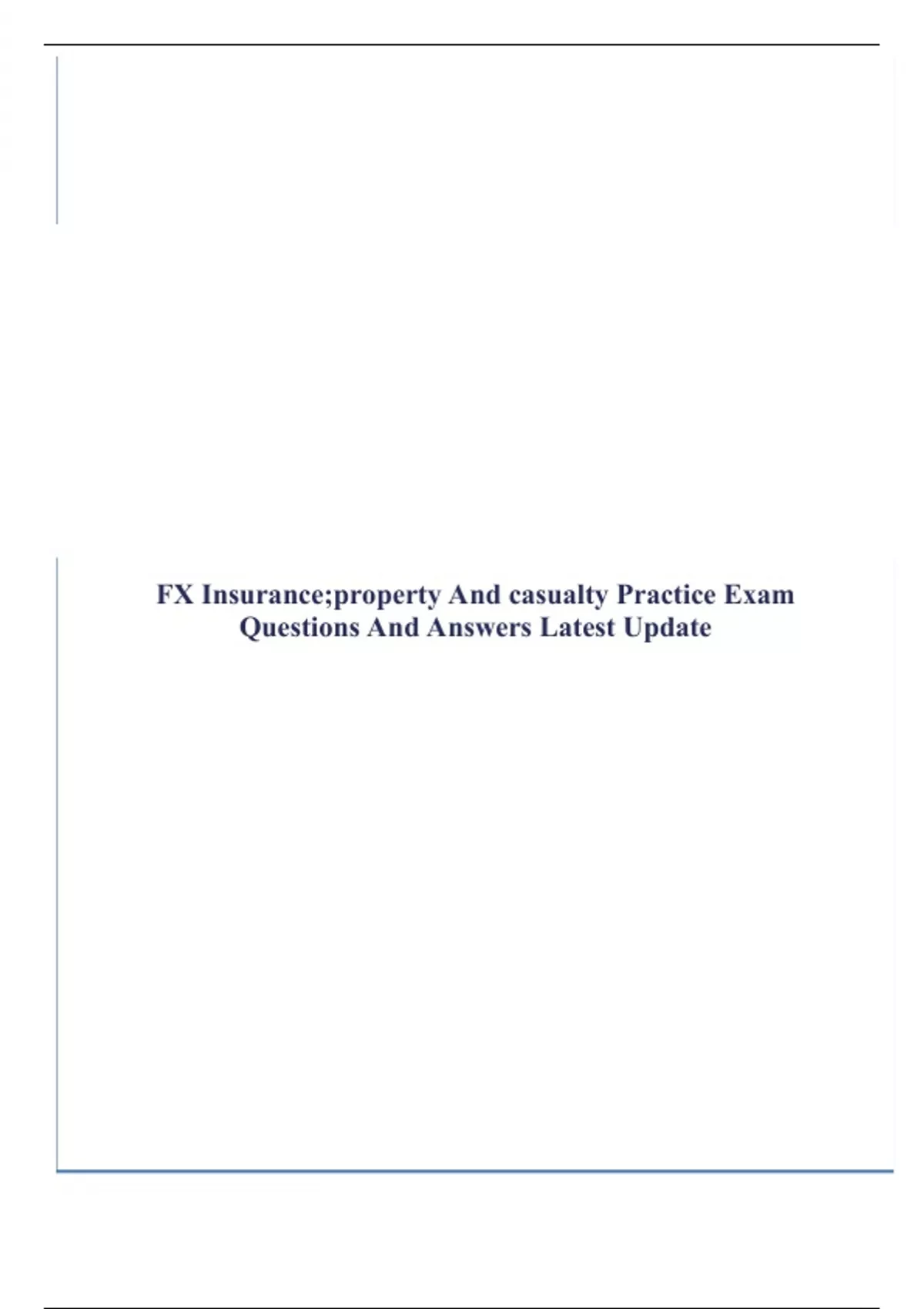 FX Insurance;property And casualty Practice Exam Questions And Answers Latest Update