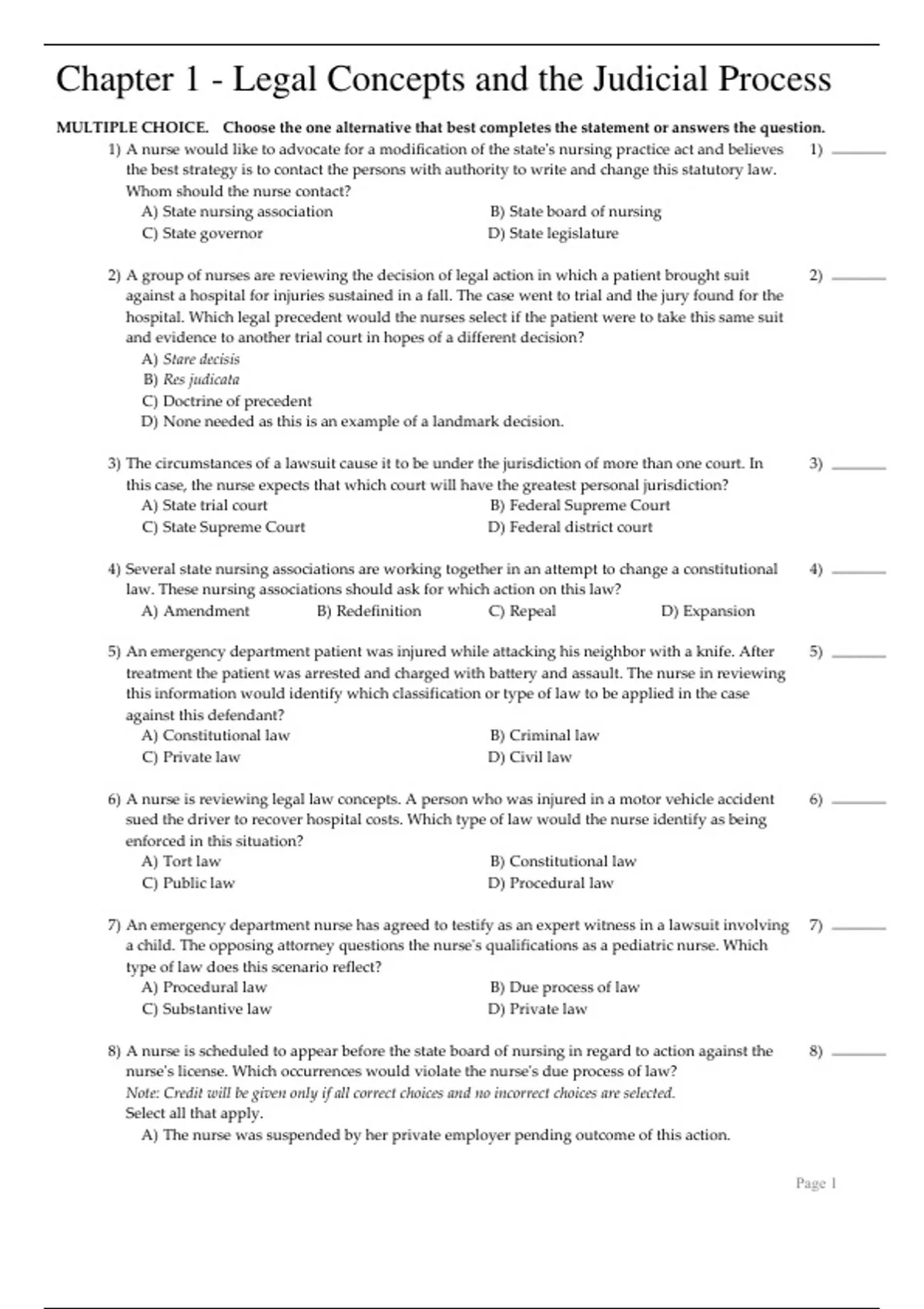 Test Bank For Legal & Ethical Issues in Nursing 7th Edition All Chapters
