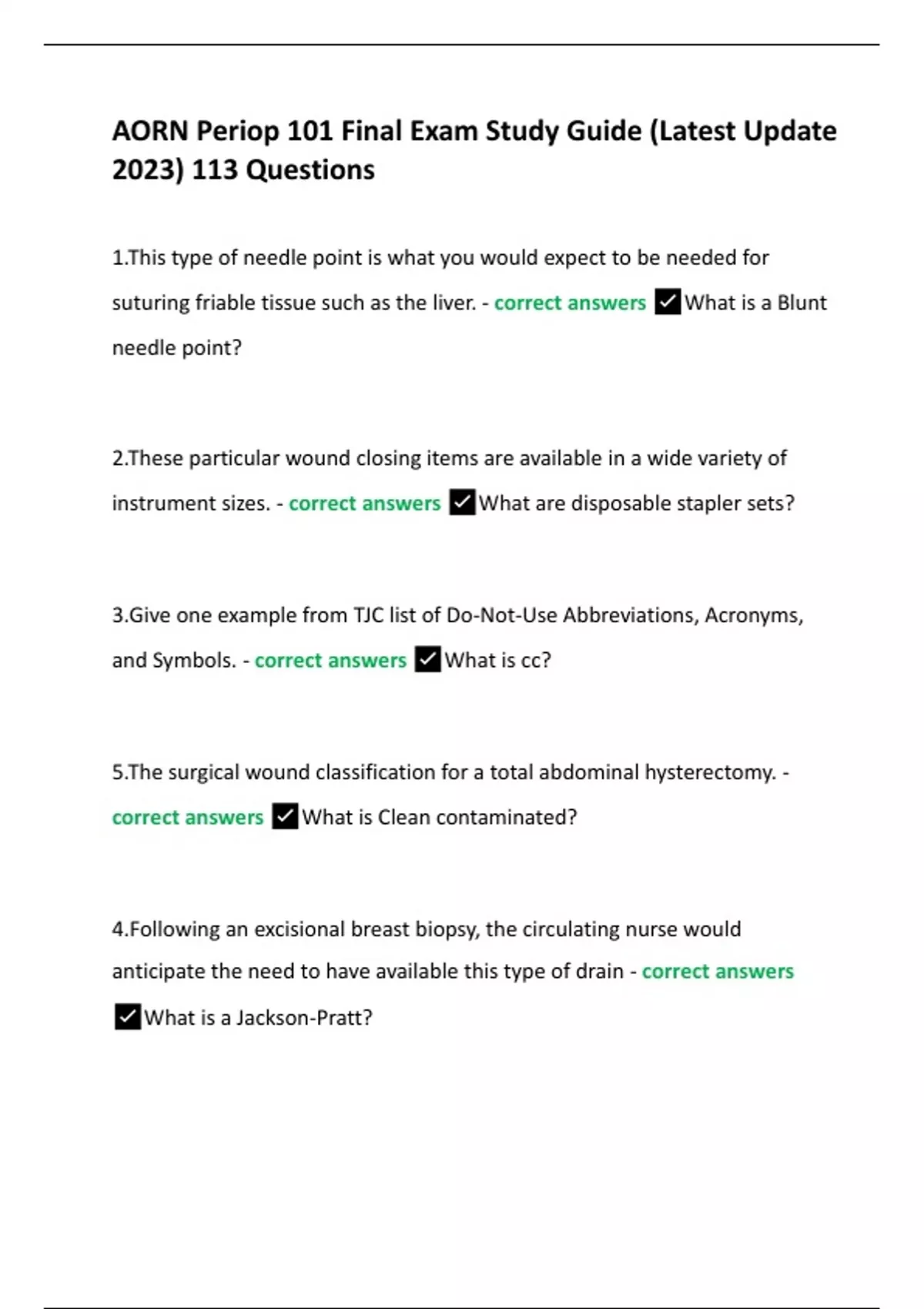 AORN Periop 101 Final Exam Study Guide (Latest Update 2023) 113 Questions