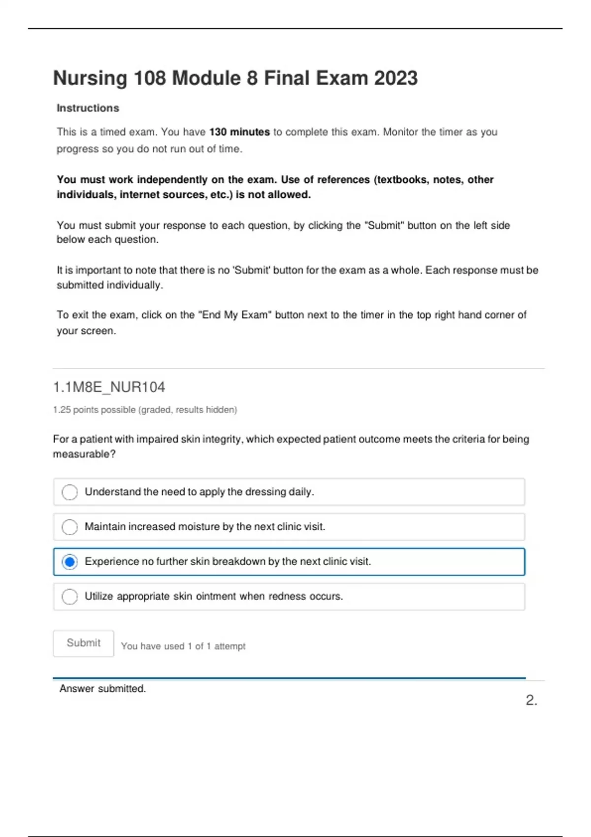 Nursing 108 M8.6 Final Exam spring 2023 Nursing 108 M8.6 Final Exam spring 2023 Nursing 108 M8.6 Final Exam spring 2023
