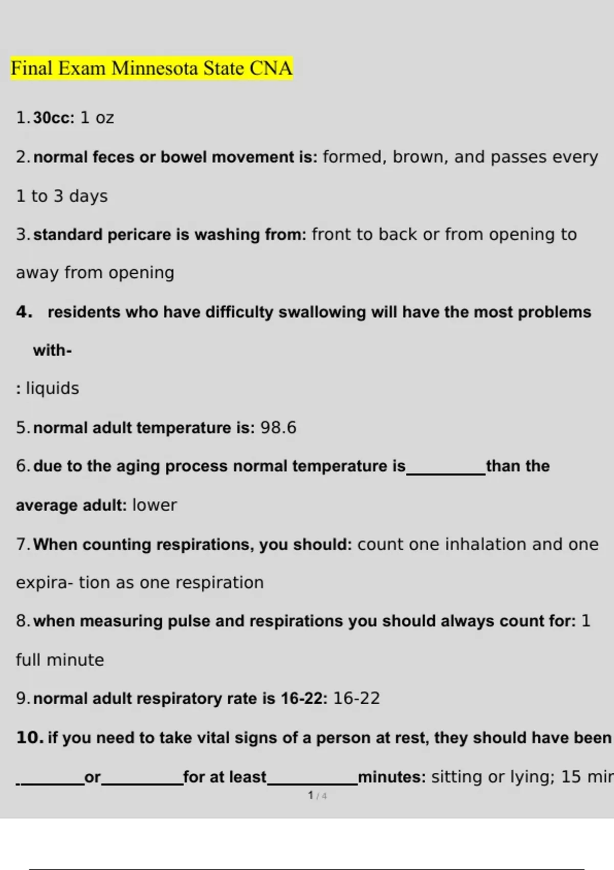 cna state final exam minnesota