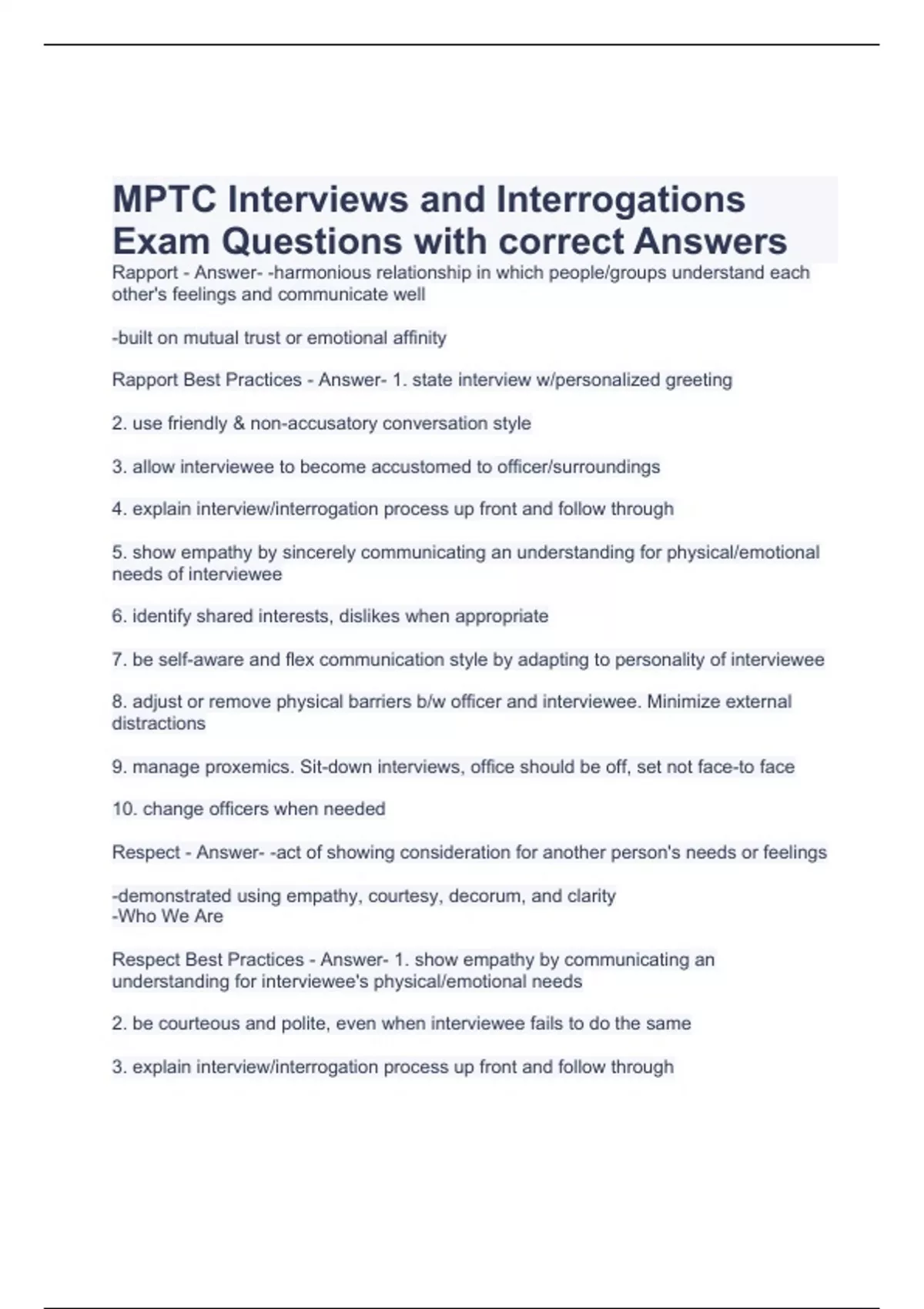 MPTC Interviews and Interrogations Exam Questions with correct Answers