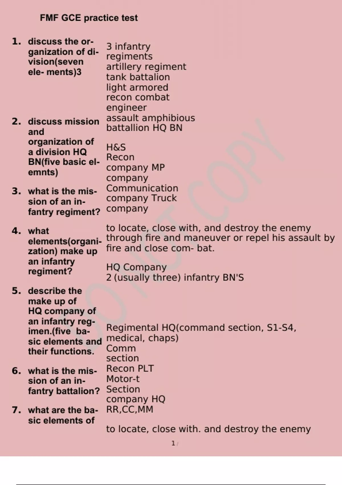 FMF GCE practice test Correct Answers