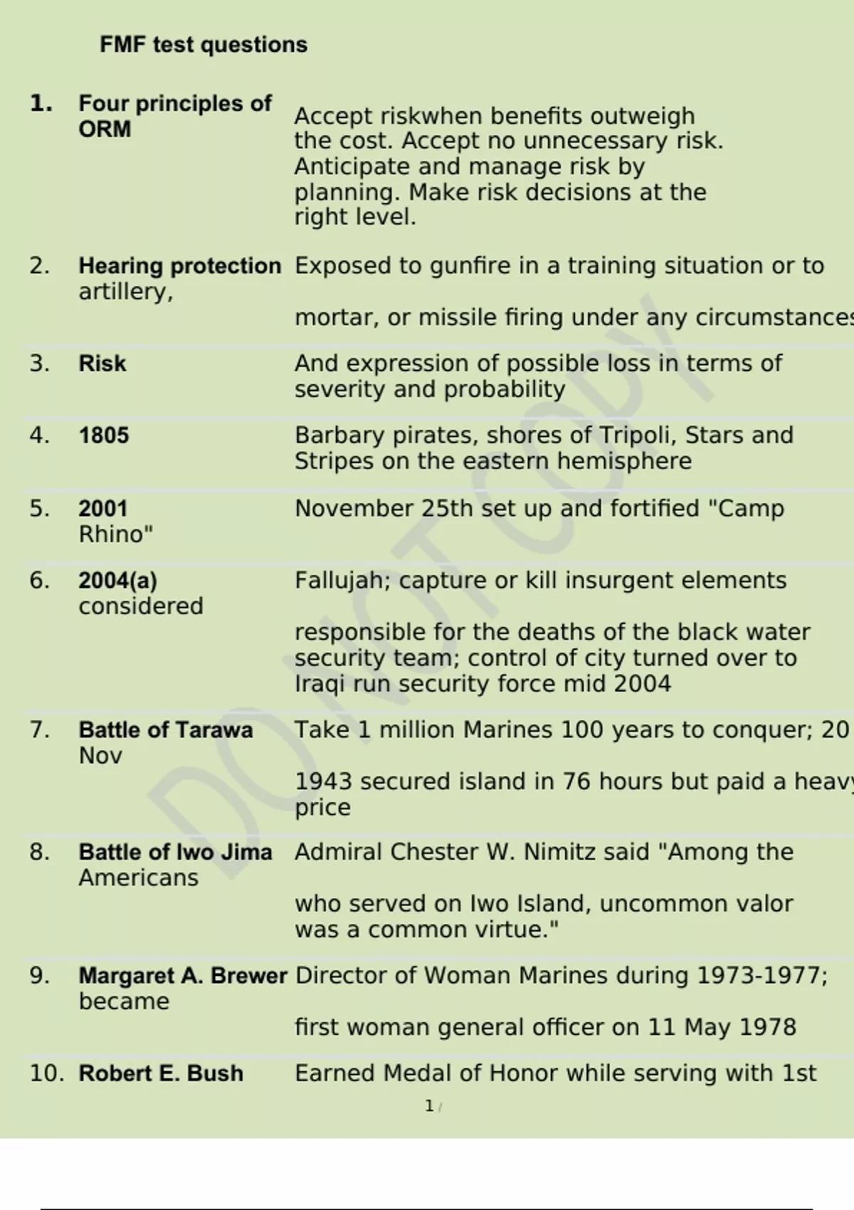 FMF test questions correct answers