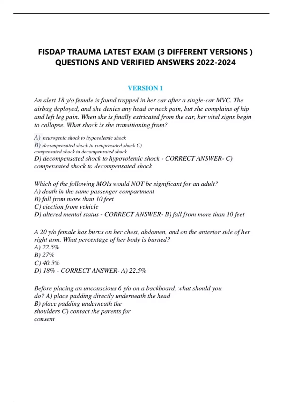 FISDAP TRAUMA LATEST EXAM FISDAP TRAUMA LATEST EXAM FISDAP TRAUMA LATEST EXAM