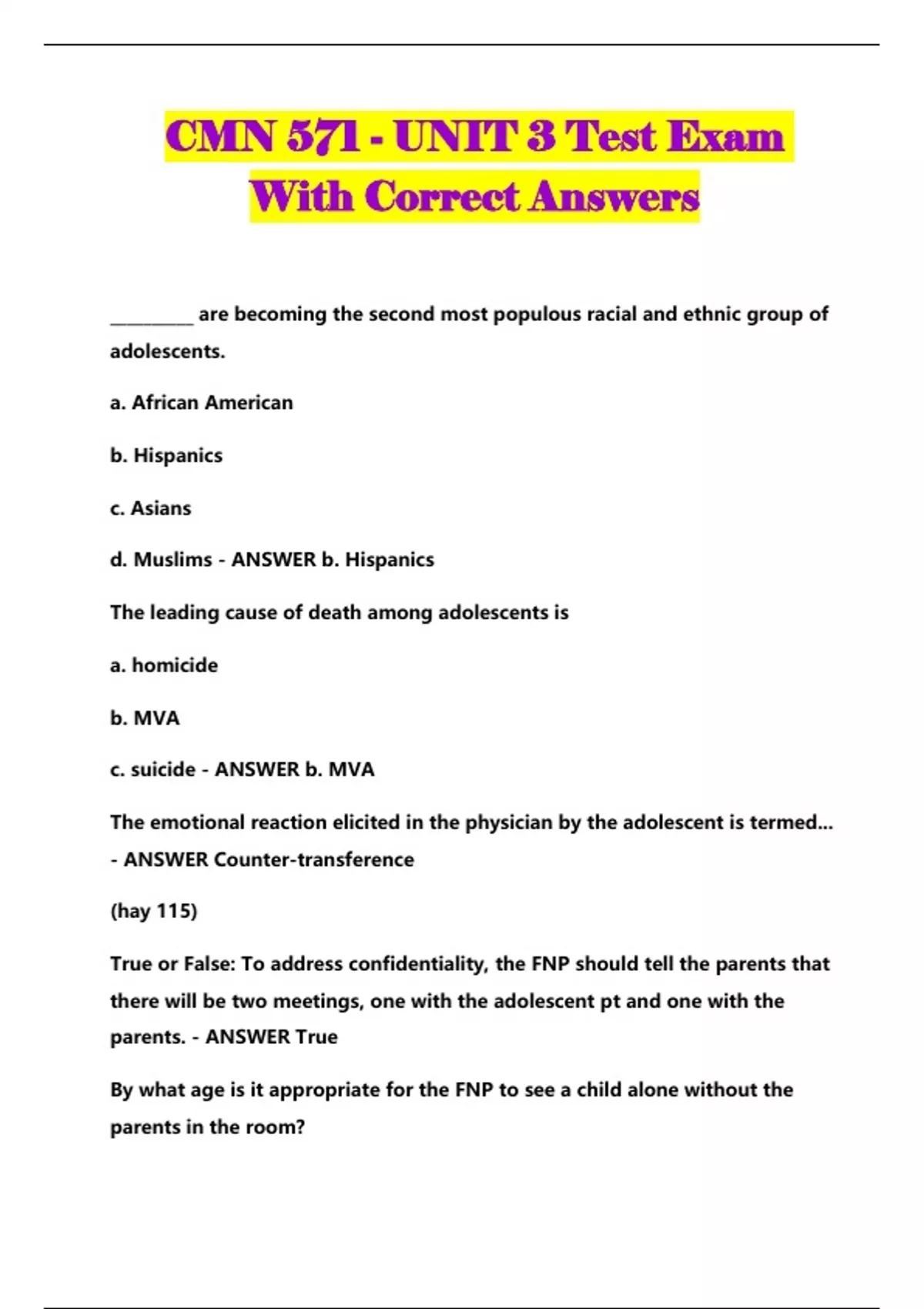 CMN 571 BUNDLED EXAMS @ 2023