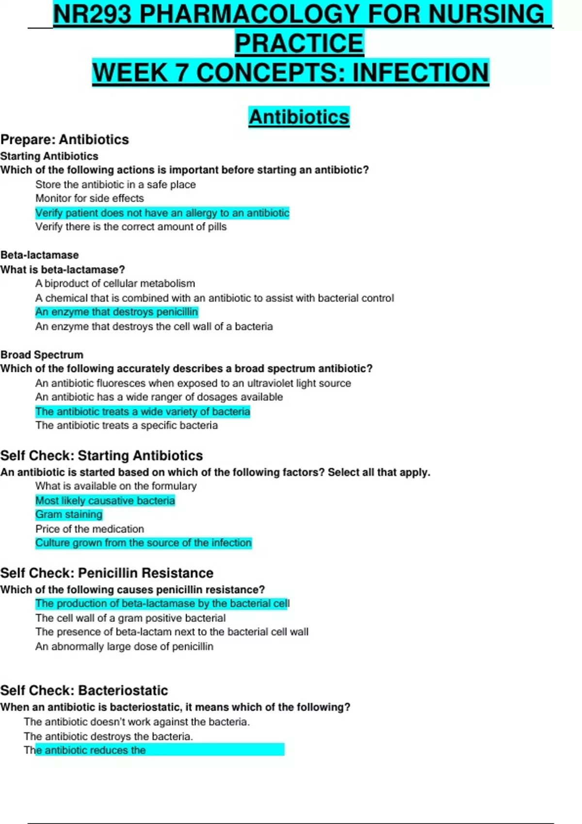 NR293 PHARMACOLOGY FOR NURSING PRACTICE WEEK 7 CONCEPTS: INFECTION
