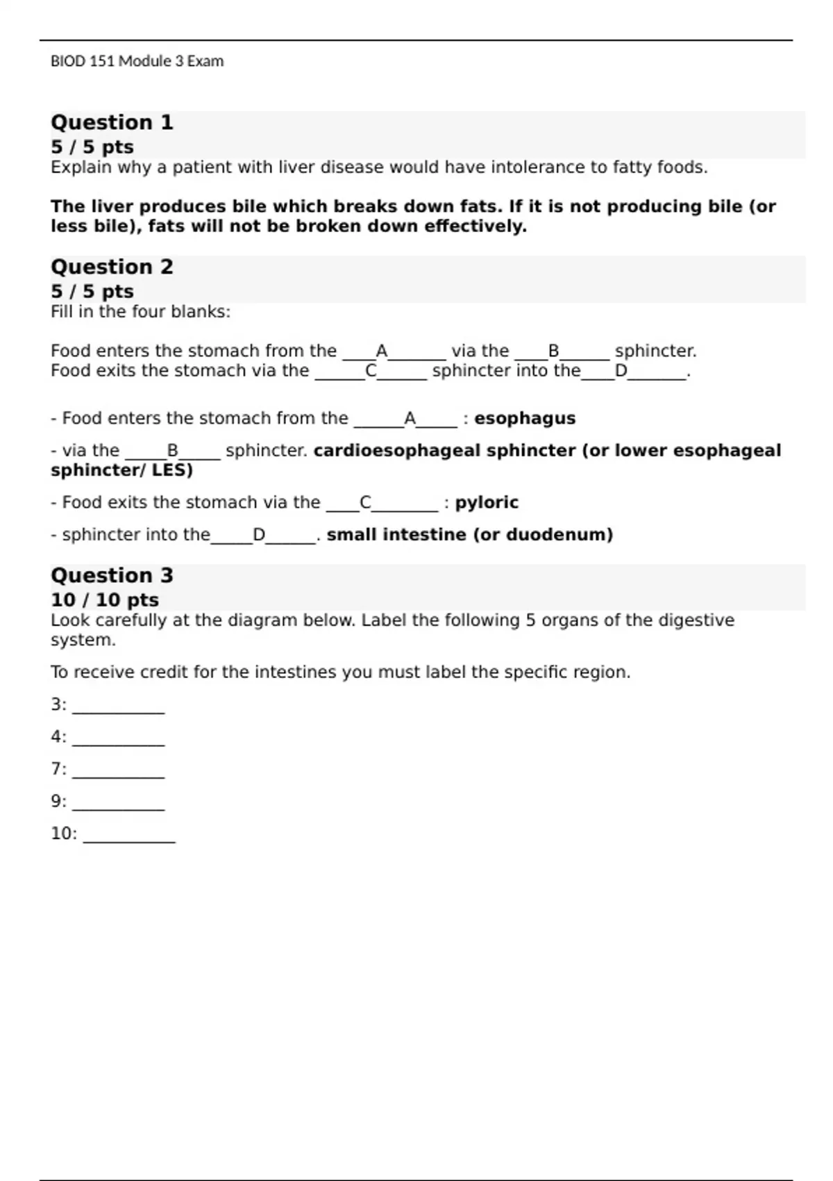 BIOD 151 / BIOD 151 Module 3 Exam Answer Key (Portage learning)