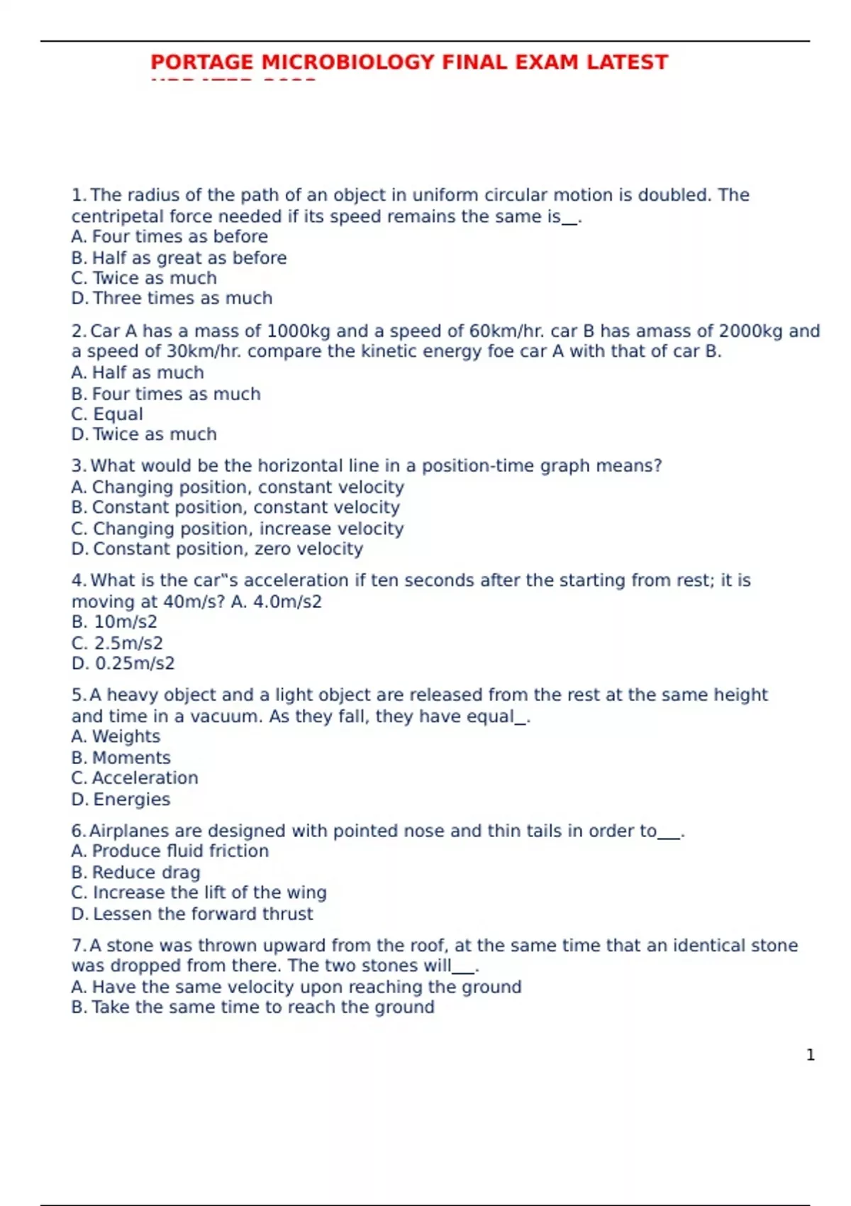 PORTAGE MICROBIOLOGY FINAL EXAM LATEST UPDATED 2023 PORTAGE MICROBIOLOGY FINAL EXAM LATEST UPDATED 2023 PORTAGE MICROBIOLOGY FINAL EXAM LATEST UPDATED 2023