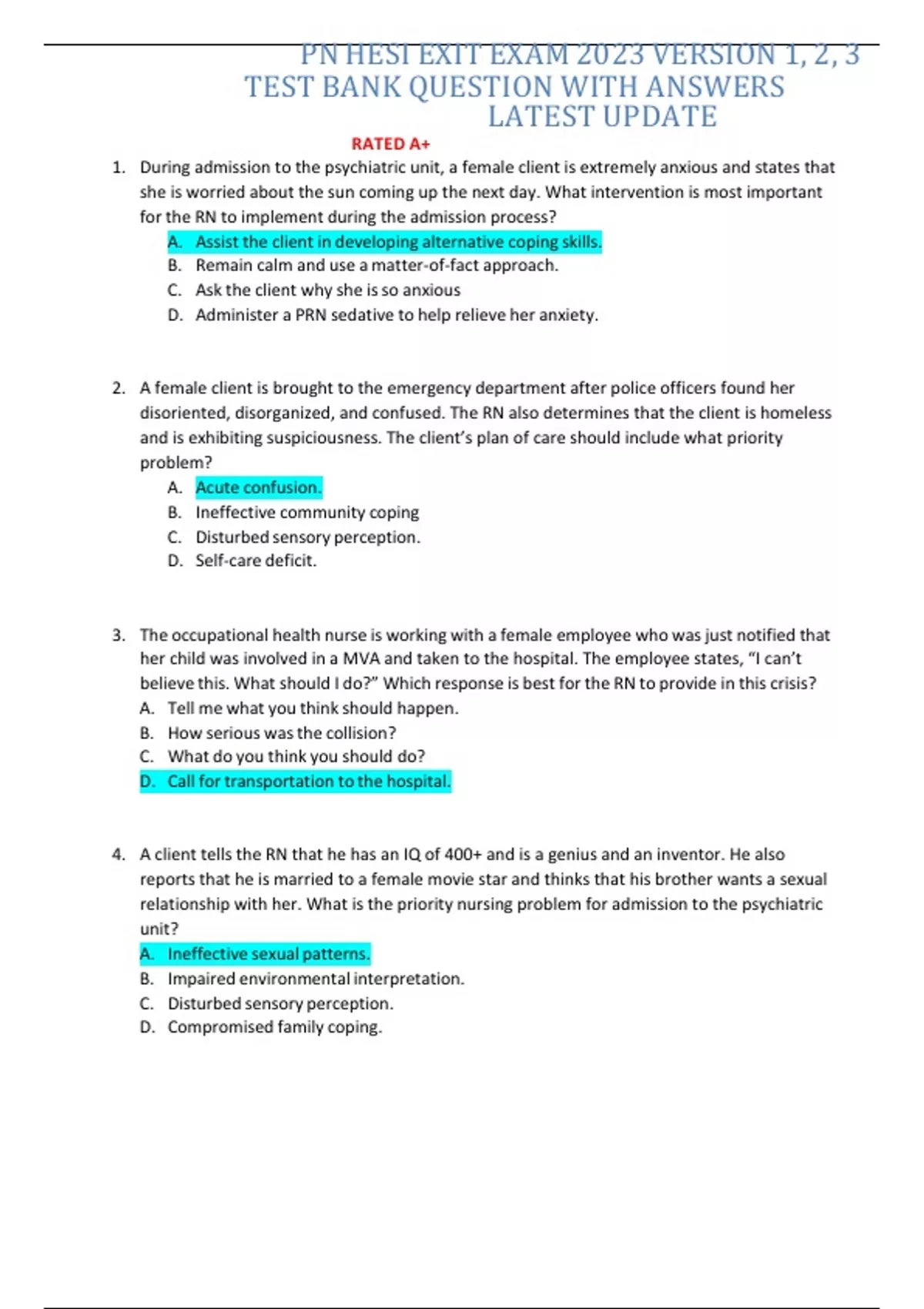 PN HESI EXIT EXAM 2023 VERSION 1, 2, 3 TEST BANK QUESTION WITH ANSWERS LATEST UPDATE PN HESI EXIT EXAM 2023 VERSION 1, 2, 3 TEST BANK QUESTION WITH ANSWERS LATEST UPDATE PN HESI EXIT EXAM 2023 VERSION 1, 2, 3 TEST BANK QUESTION WITH ANSWERS LATEST UPDATE