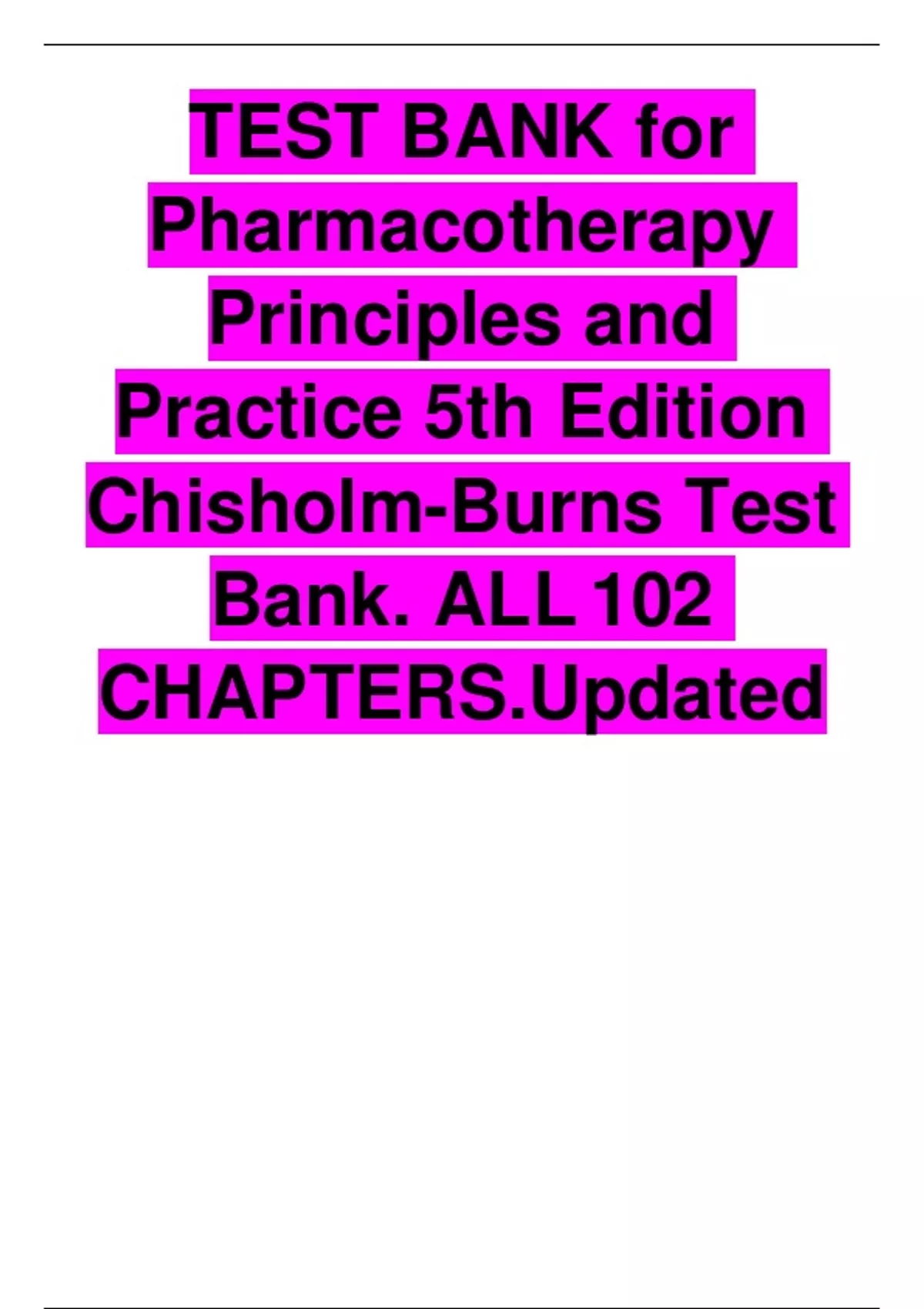 TEST BANK for Pharmacotherapy Principles and Practice 5th Edition Chisholm-Burns Test Bank. ALL 102 CHAPTERS. Updated 2023