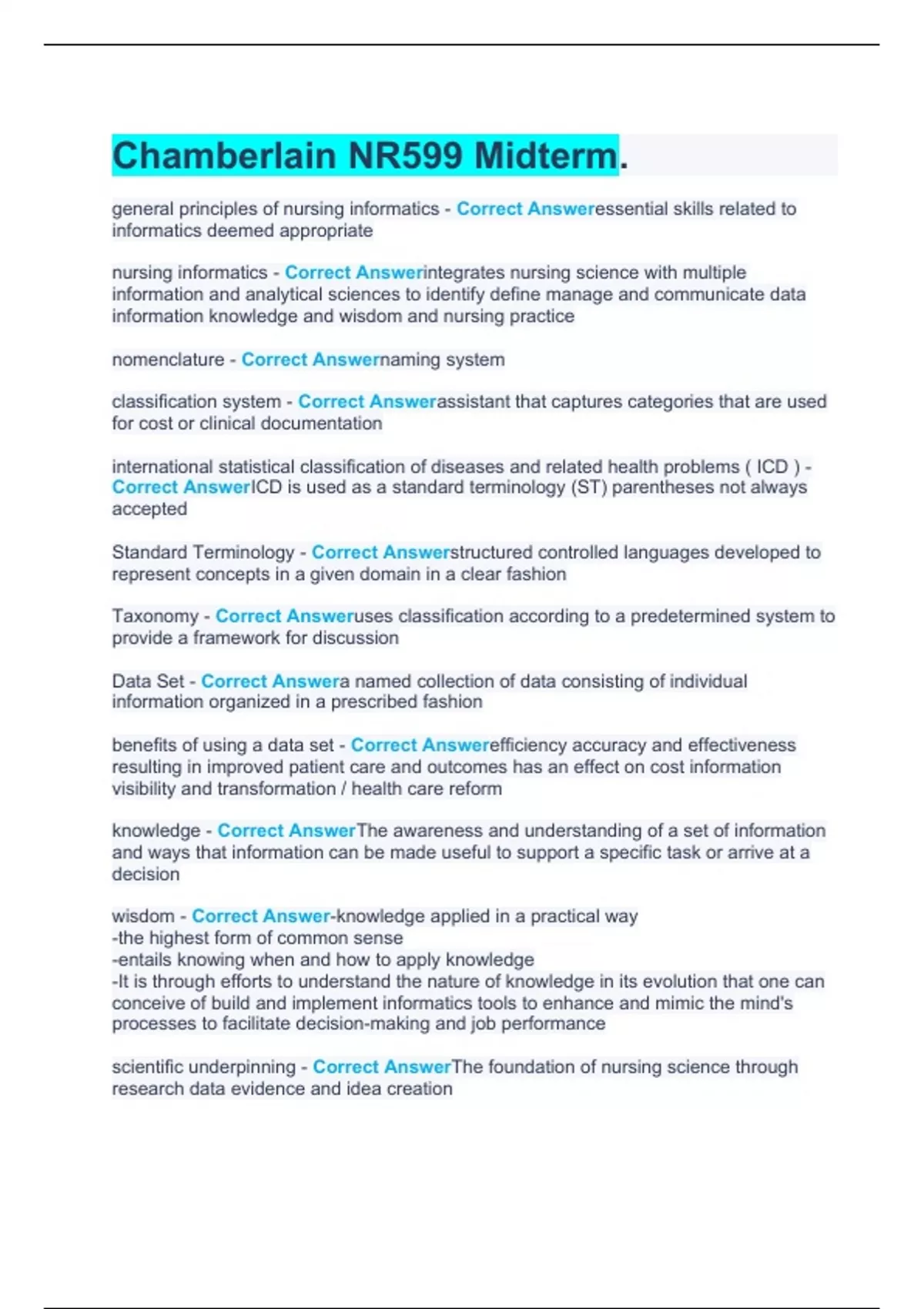 Chamberlain NR599 MidtermChamberlain NR599 MidtermChamberlain NR599 Midterm