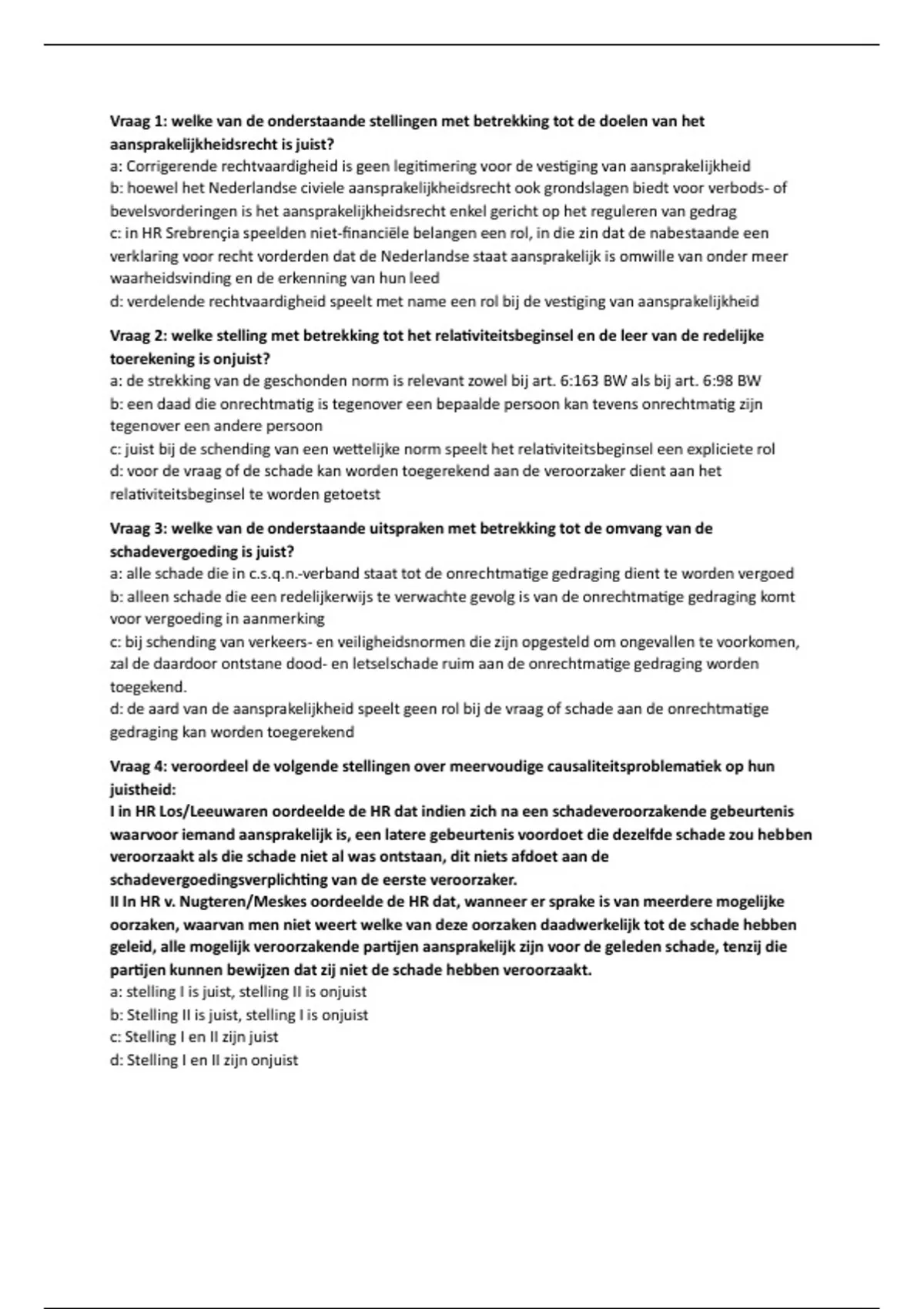 Vraag 4: veroordeel de volgende stellingen over meervoudige causaliteitsproblematiek op hun