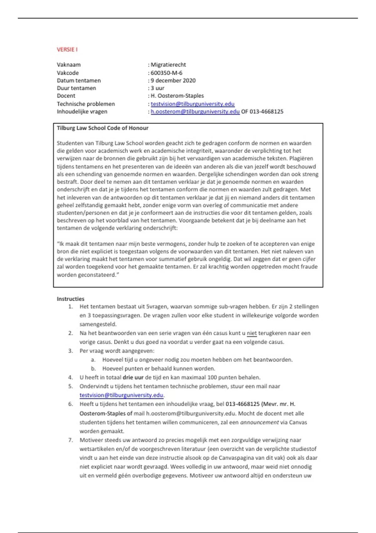studenten/personen en dat je je conformeert aan de instructies die voor dit tentamen gelden, zoals