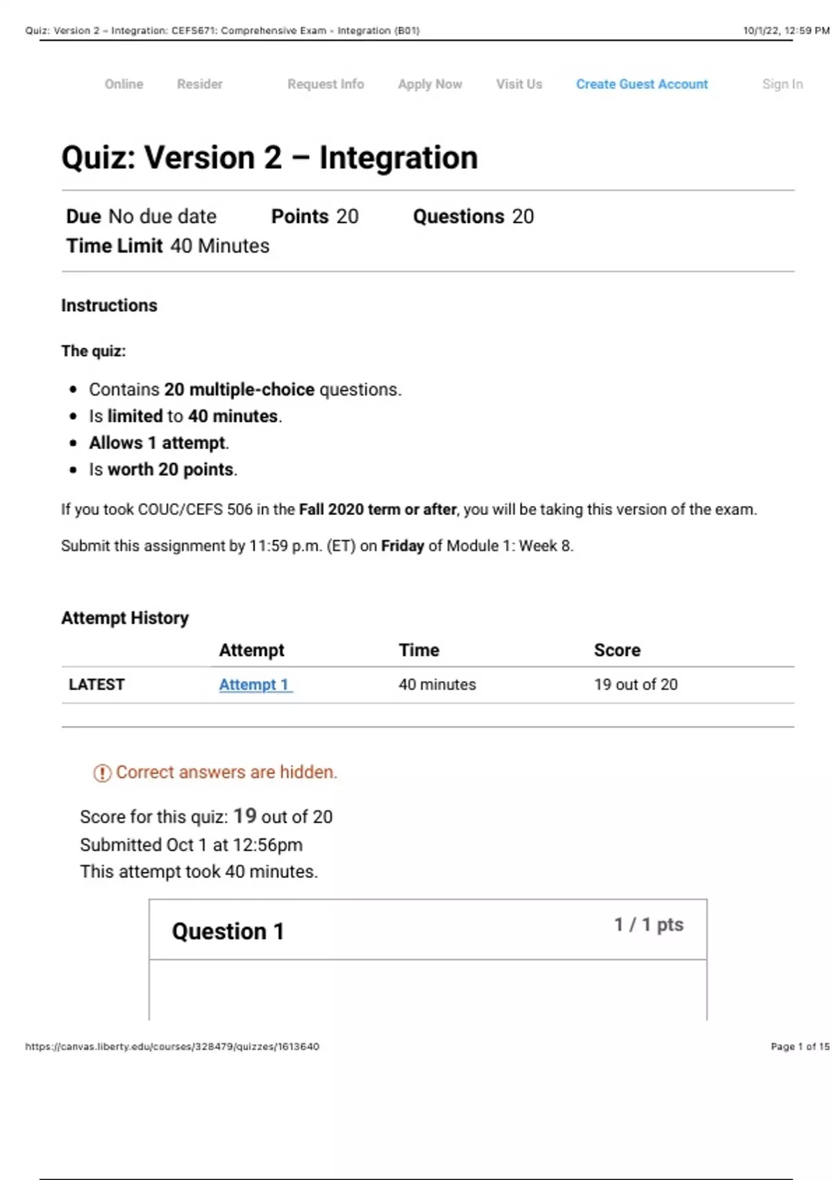 https://canvas.liberty.edu/courses/328479/quizzes/1613640 Page 1 of 15