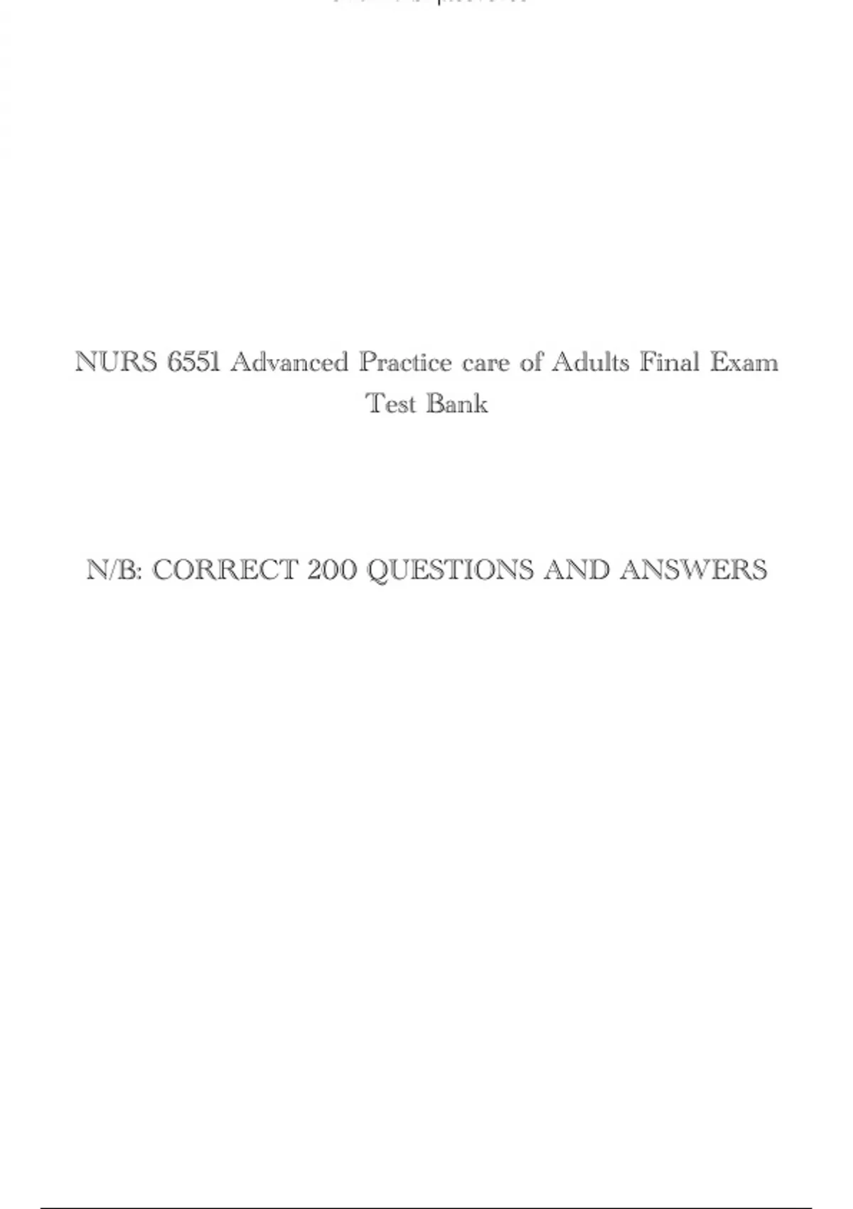 NURS 6551 Advanced Practice care of Adults Final Exam Test Bank