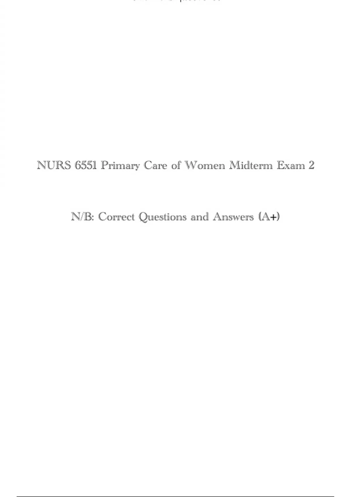 NURS 6551 Primary Care of Women Midterm Exam 2