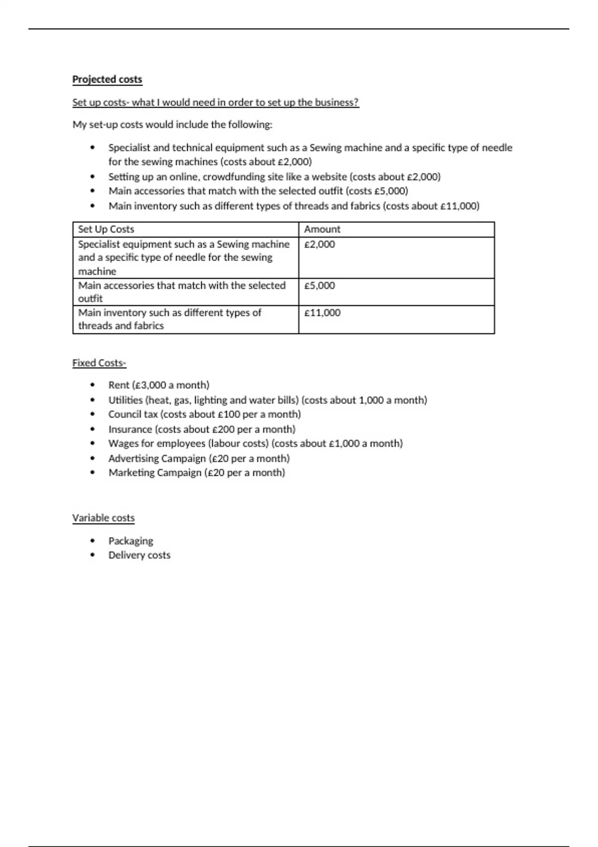 I have explained with an example about how to write up a Projected Costs for my assignment at hand. I hope that this helps you out.