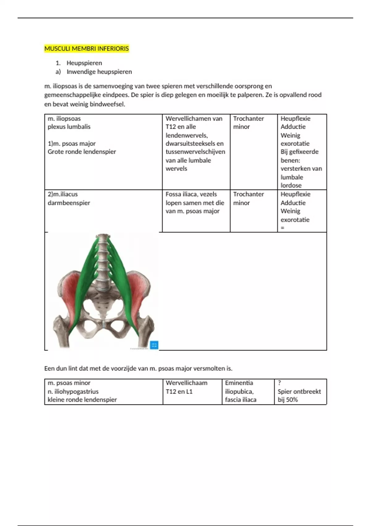 m. iliopsoas Wervellichamen van Trochanter Heupflexie