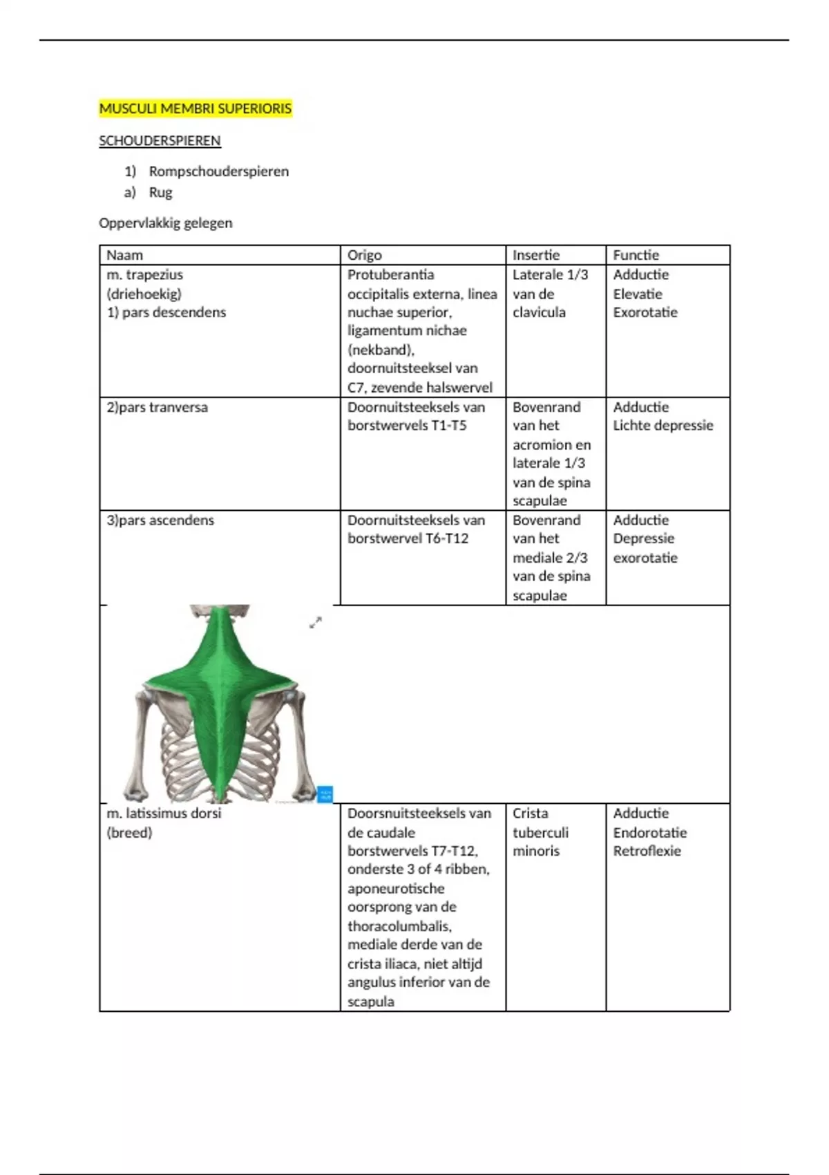 m. rhomboideus major Processus spinosus Margo medialis van Adductie