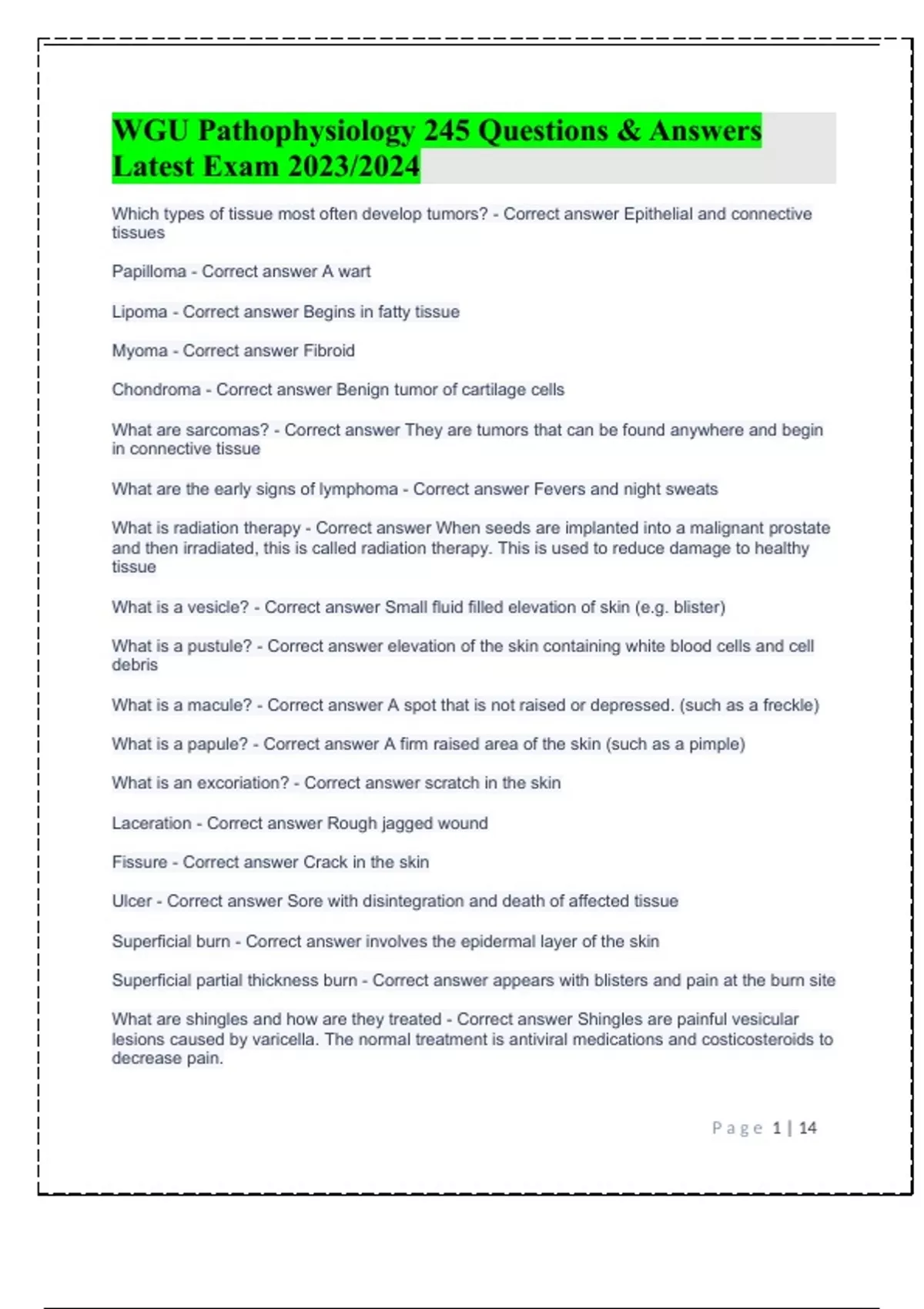 WGU Pathophysiology 245 Questions & Answers Latest Exam 2023/2024WGU Pathophysiology 245 Questions & Answers Latest Exam 2023/2024