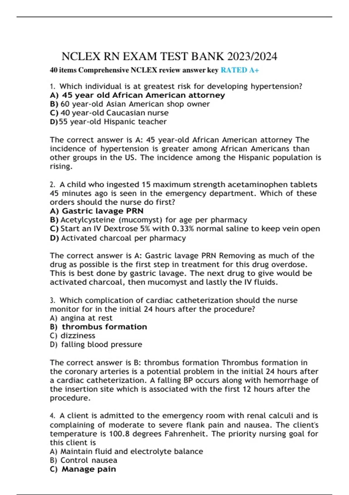 NCLEX RN Exam Test Bank 2023/2024