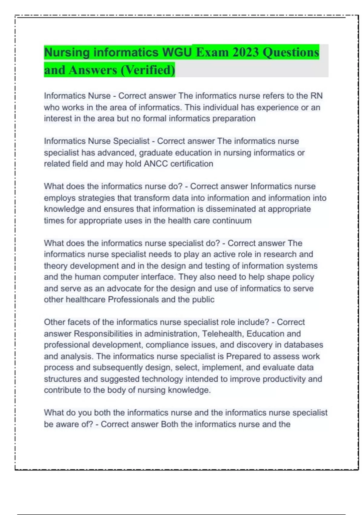 Nursing informatics WGU Exam 2023 Questions and Answers (Verified)