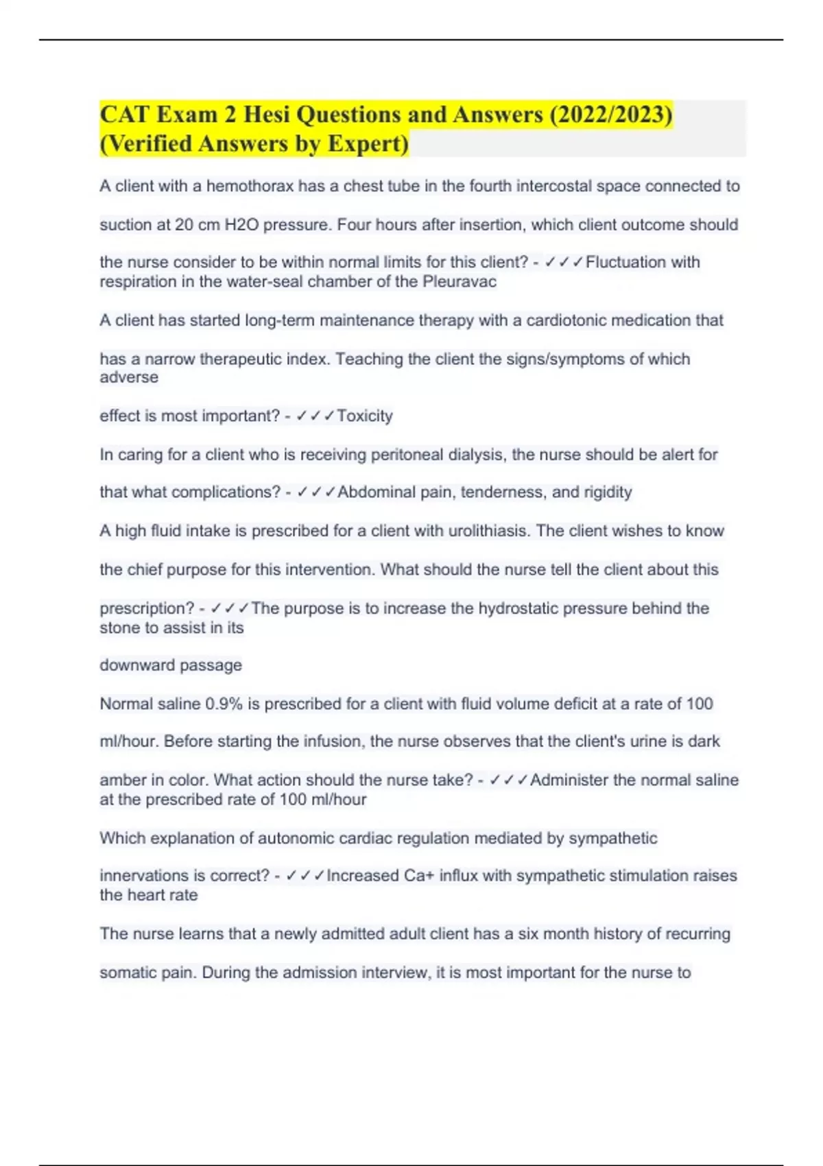 ml/hour. Before starting the infusion, the nurse observes that the client's urine is dark amber in color. What action should the nurse take? - ✓✓✓Administer the normal saline at the prescribed rate of 100 ml/hour