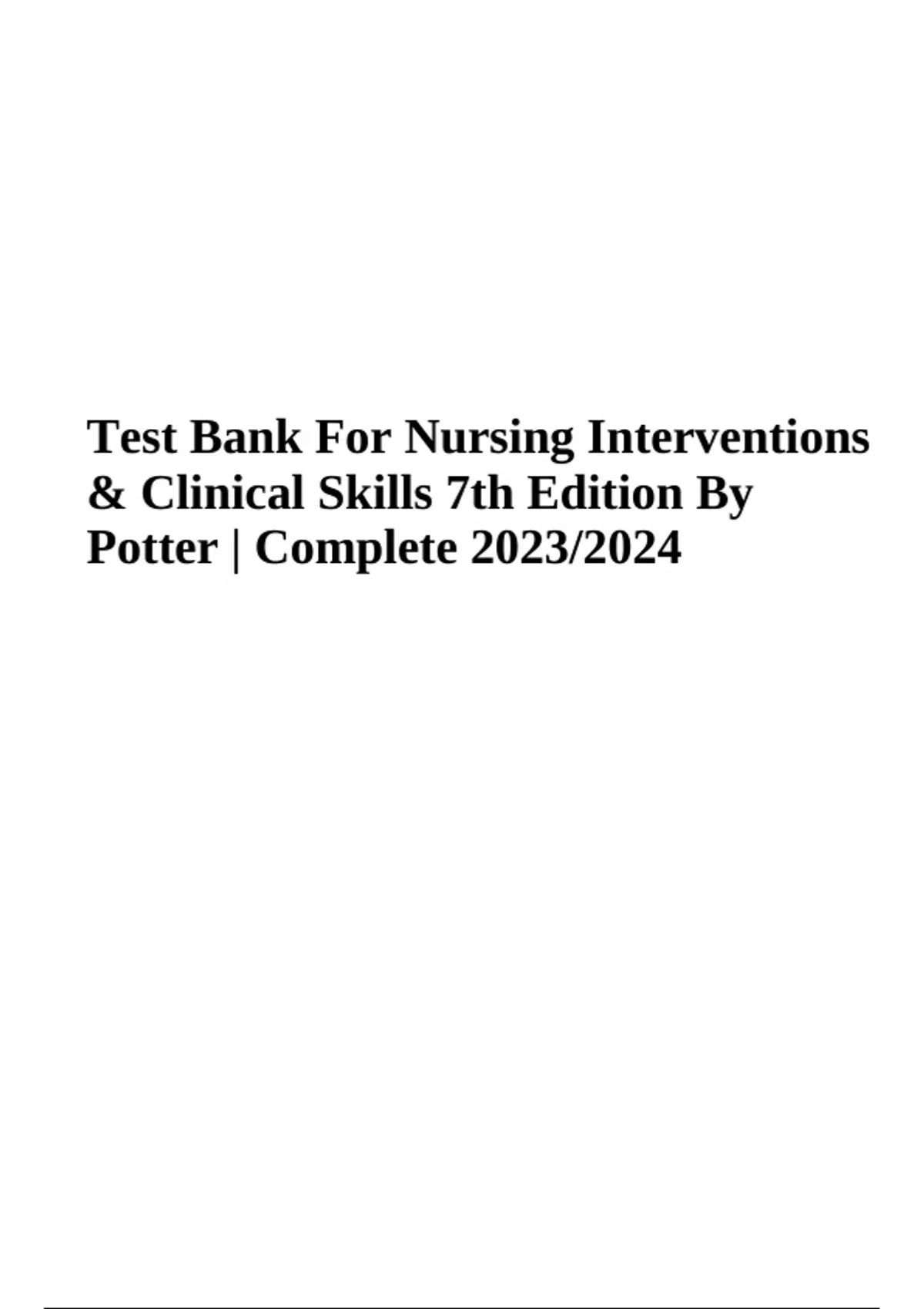 Test Bank For Nursing Interventions & Clinical Skills 7th Edition By Potter | Complete 2023/2024
