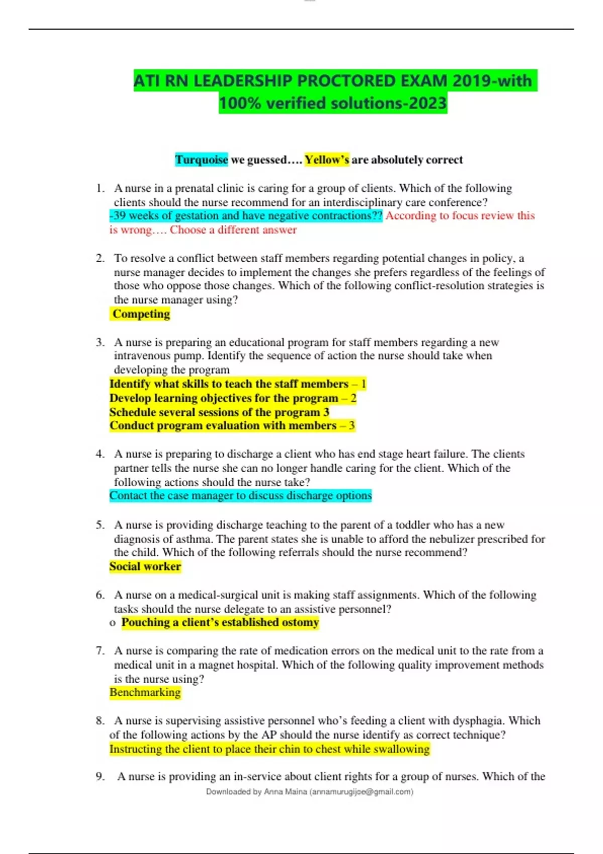 ATI RN LEADERSHIP PROCTORED EXAM 2019-with 100% verified solutions-2023