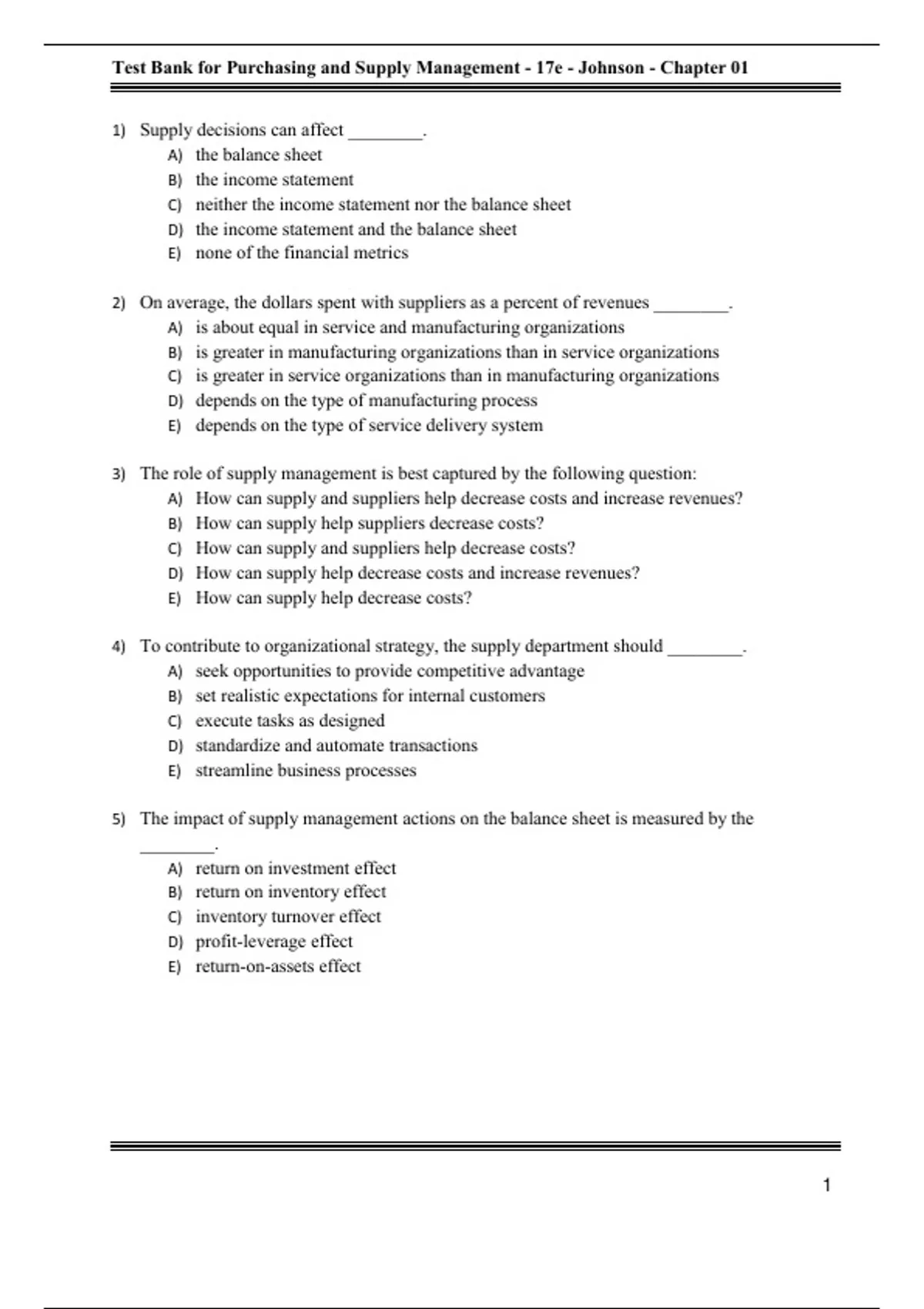 Test Bank For Purchasing and Supply Management, 17th Edition All Chapters