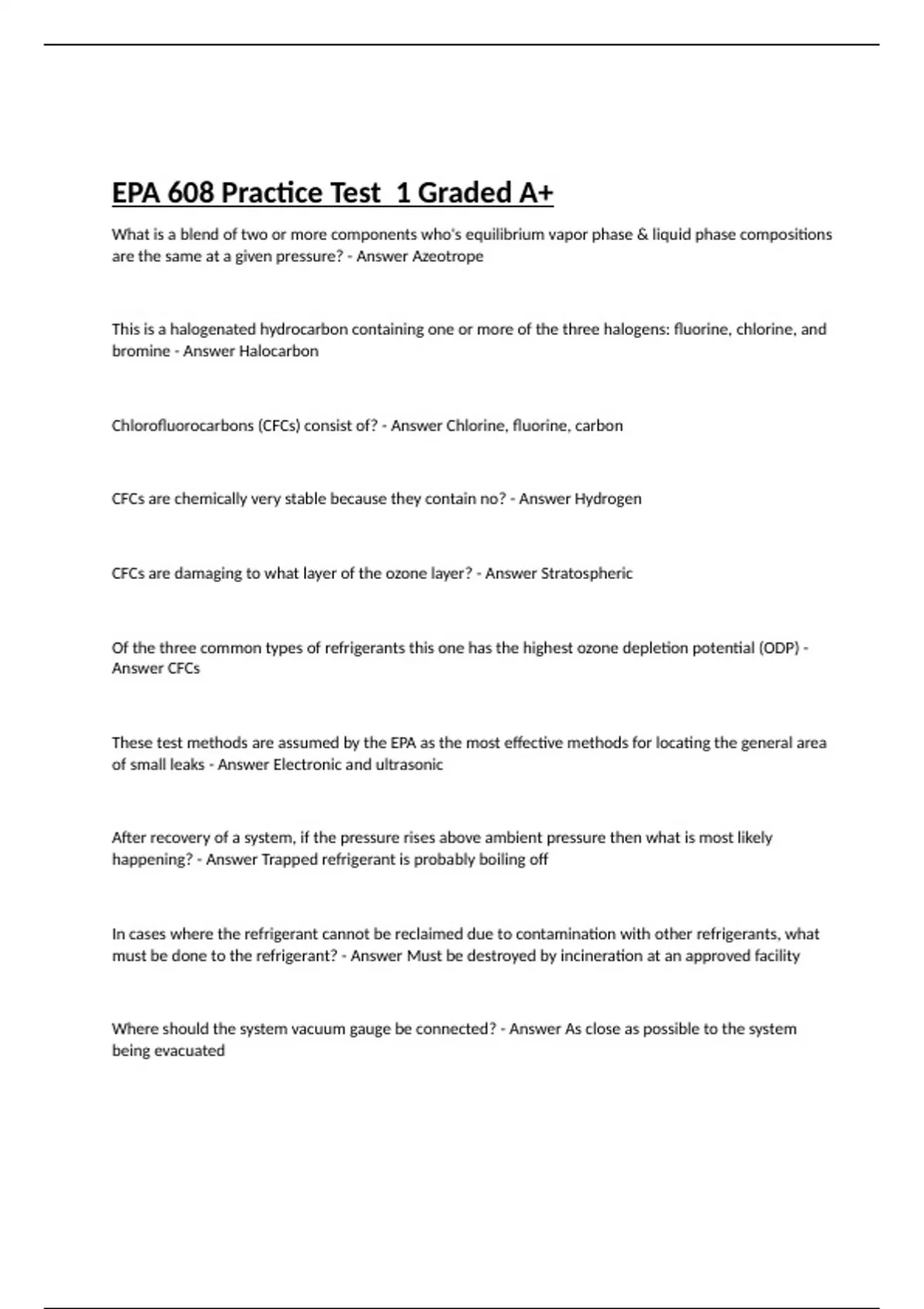EPA 608 Practice Test 1 Graded A+