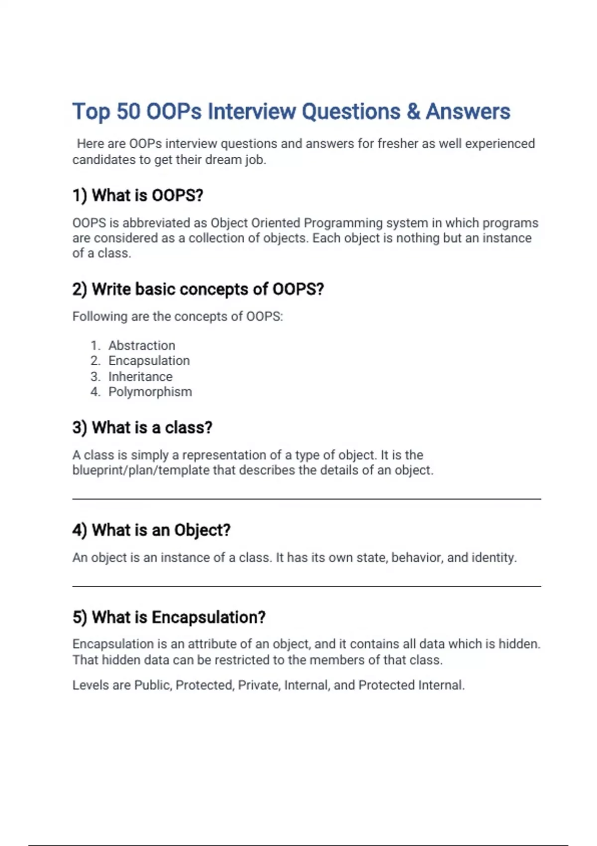 Summary 11- page PYHON OOP INTERVIEW QUESTIONS