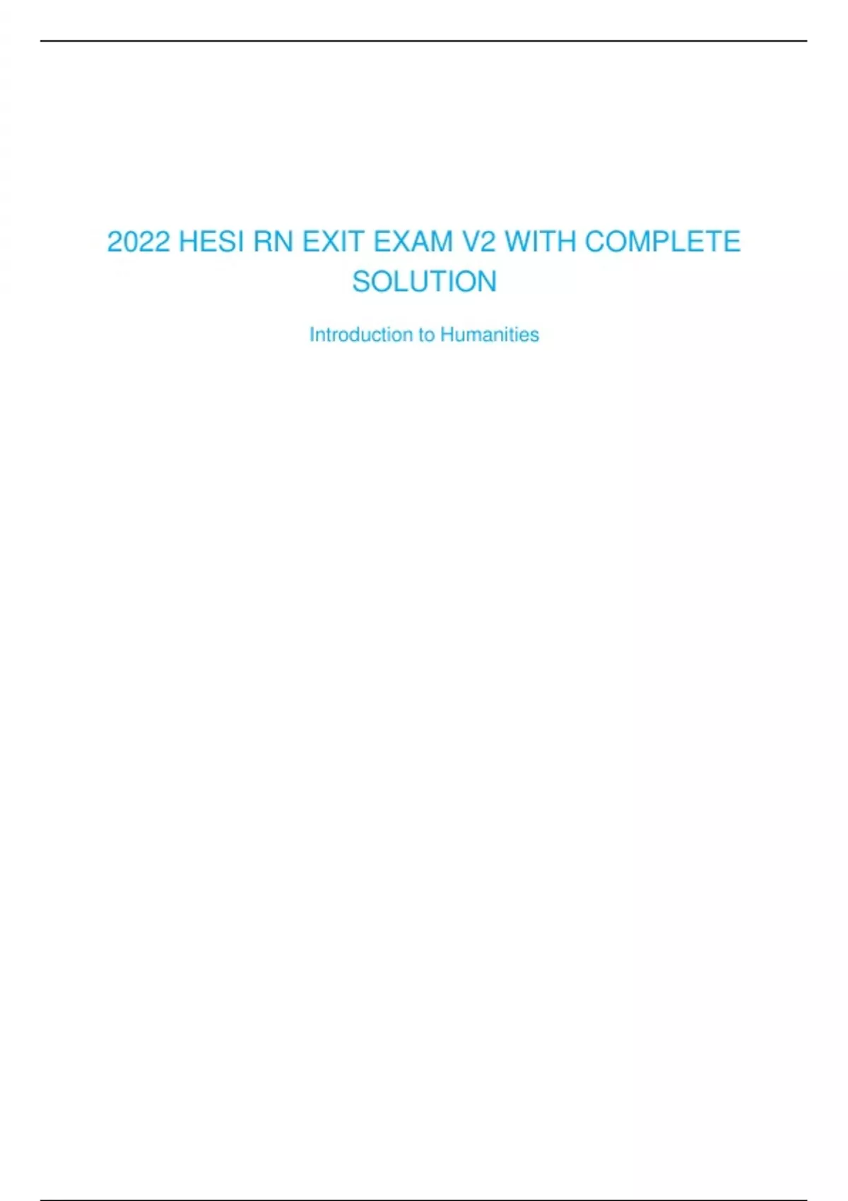 2022 HESI RN EXIT EXAM V2 WITH COMPLETE SOLUTION Introduction to Humanities