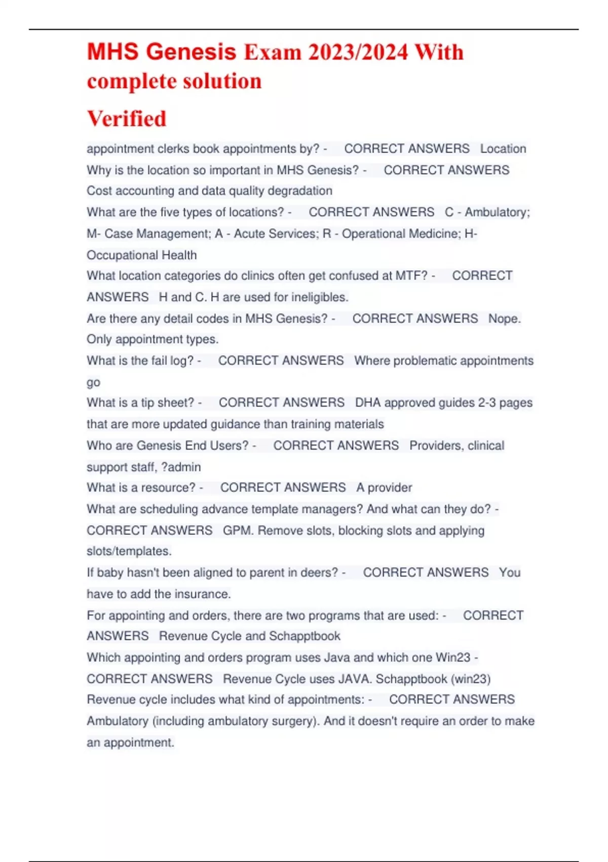 MHS Genesis Exam 2023/2024 With complete solution Verified