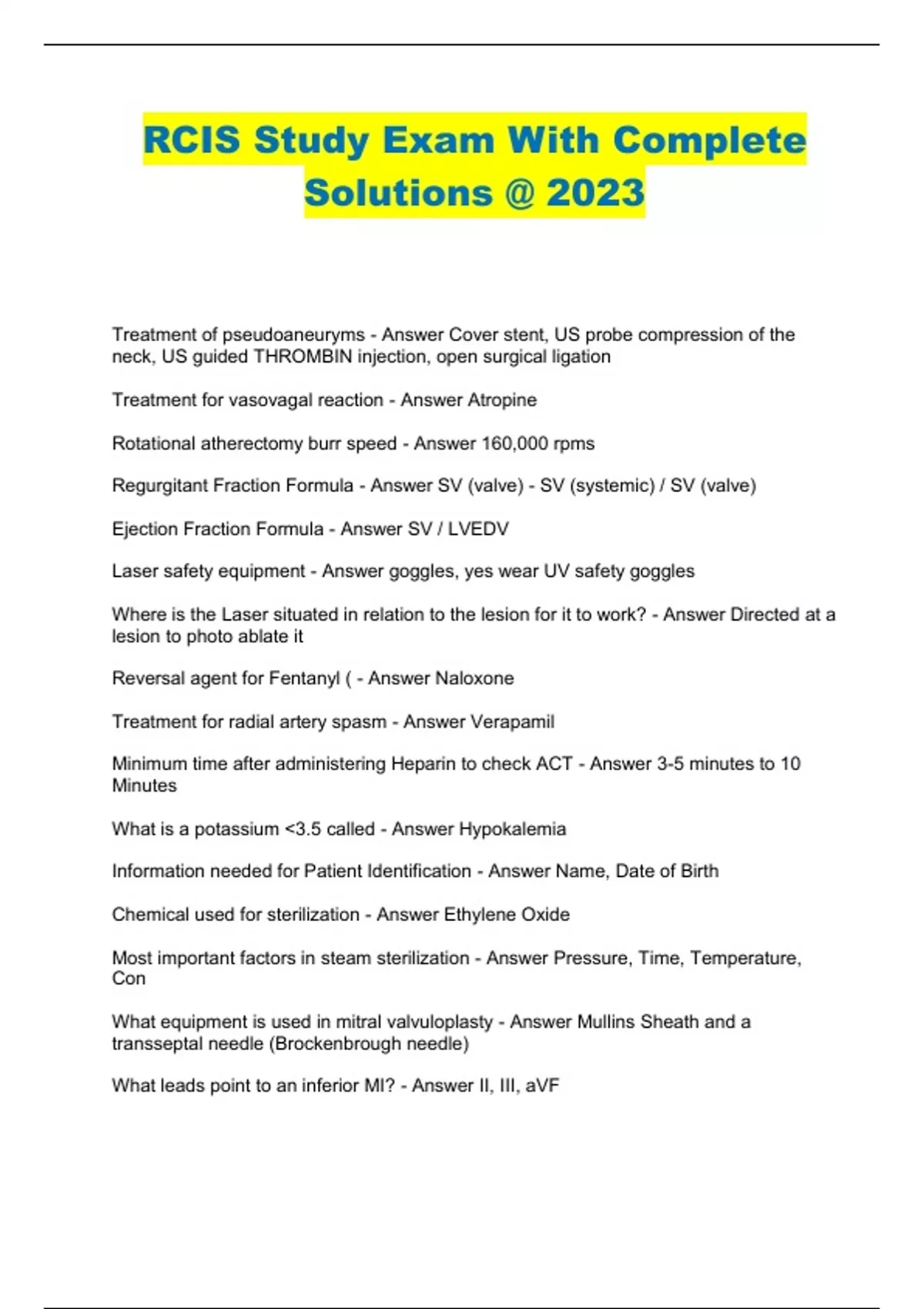 RCIS Study Exam LATEST UPDATE A+ GUARANTEED