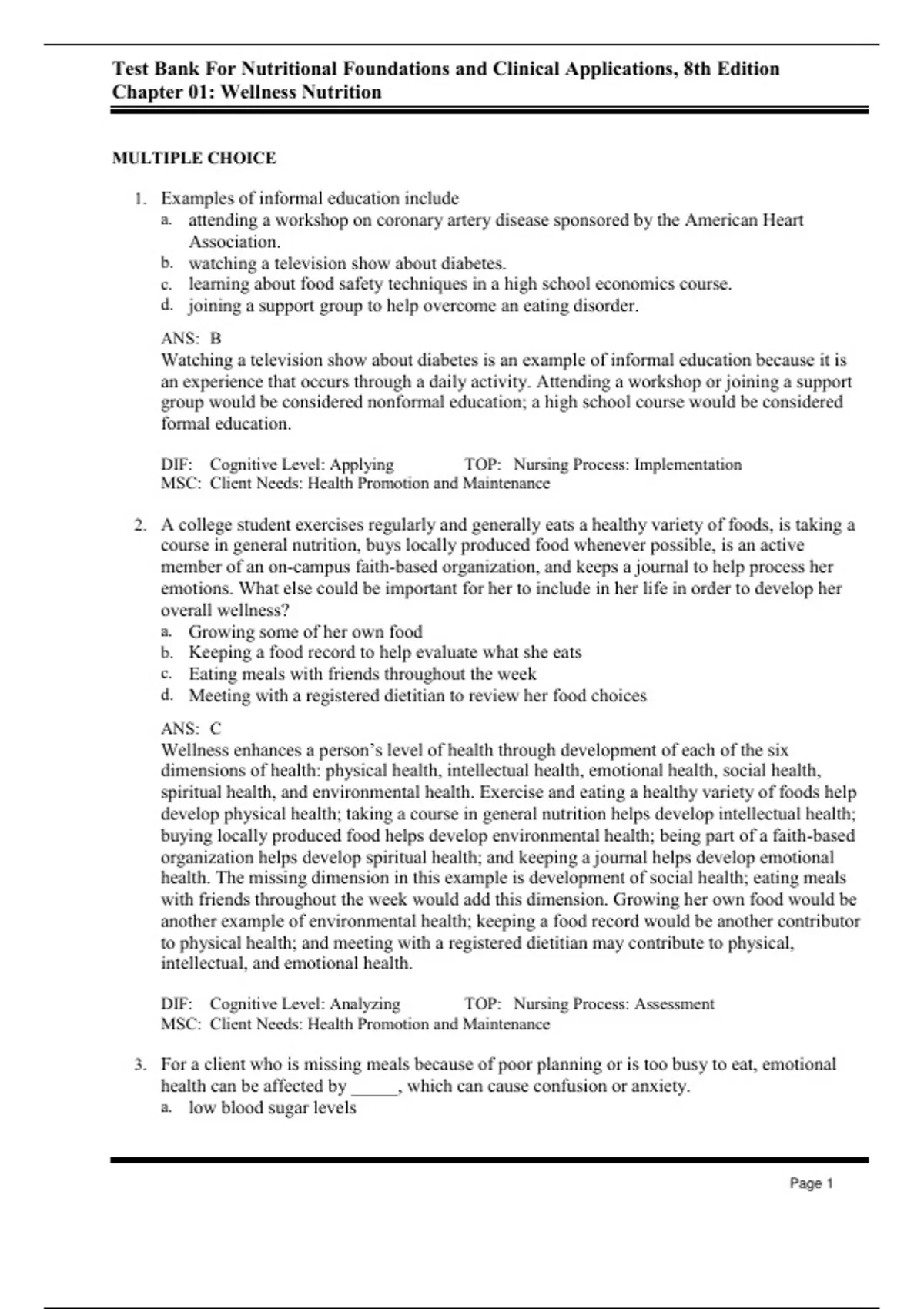 Test Bank For Nutritional Foundations & Clinical Application, 8th - 2023 All Chapters