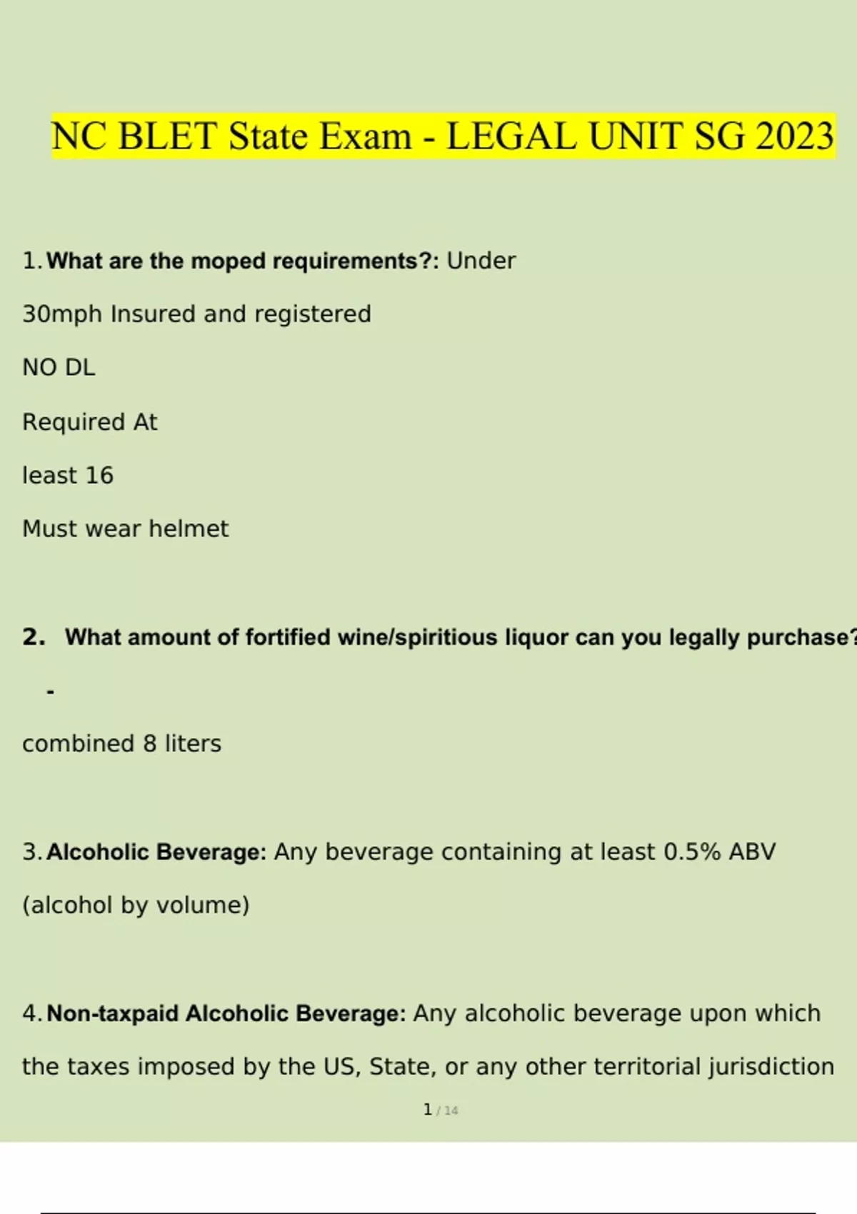nc blet state exam legal unit sg