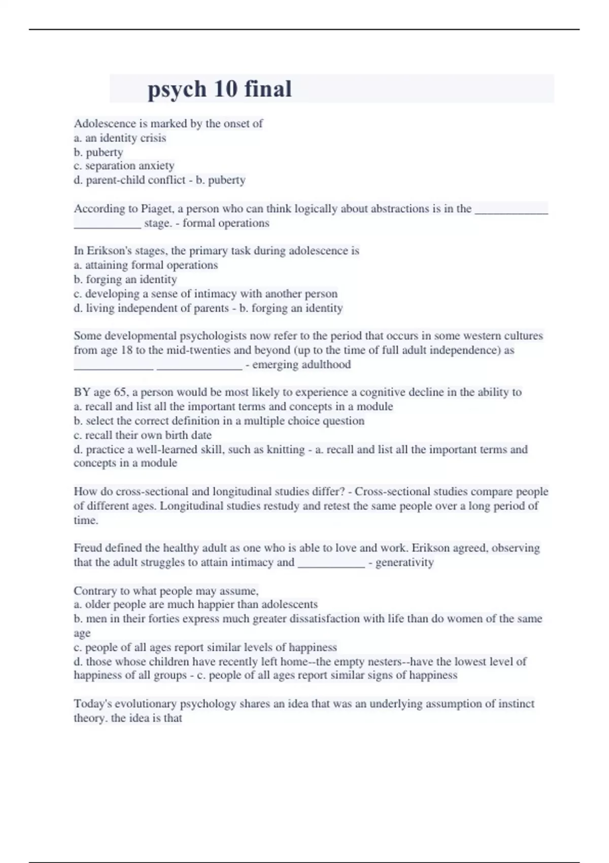 psych 10 final exam graded a