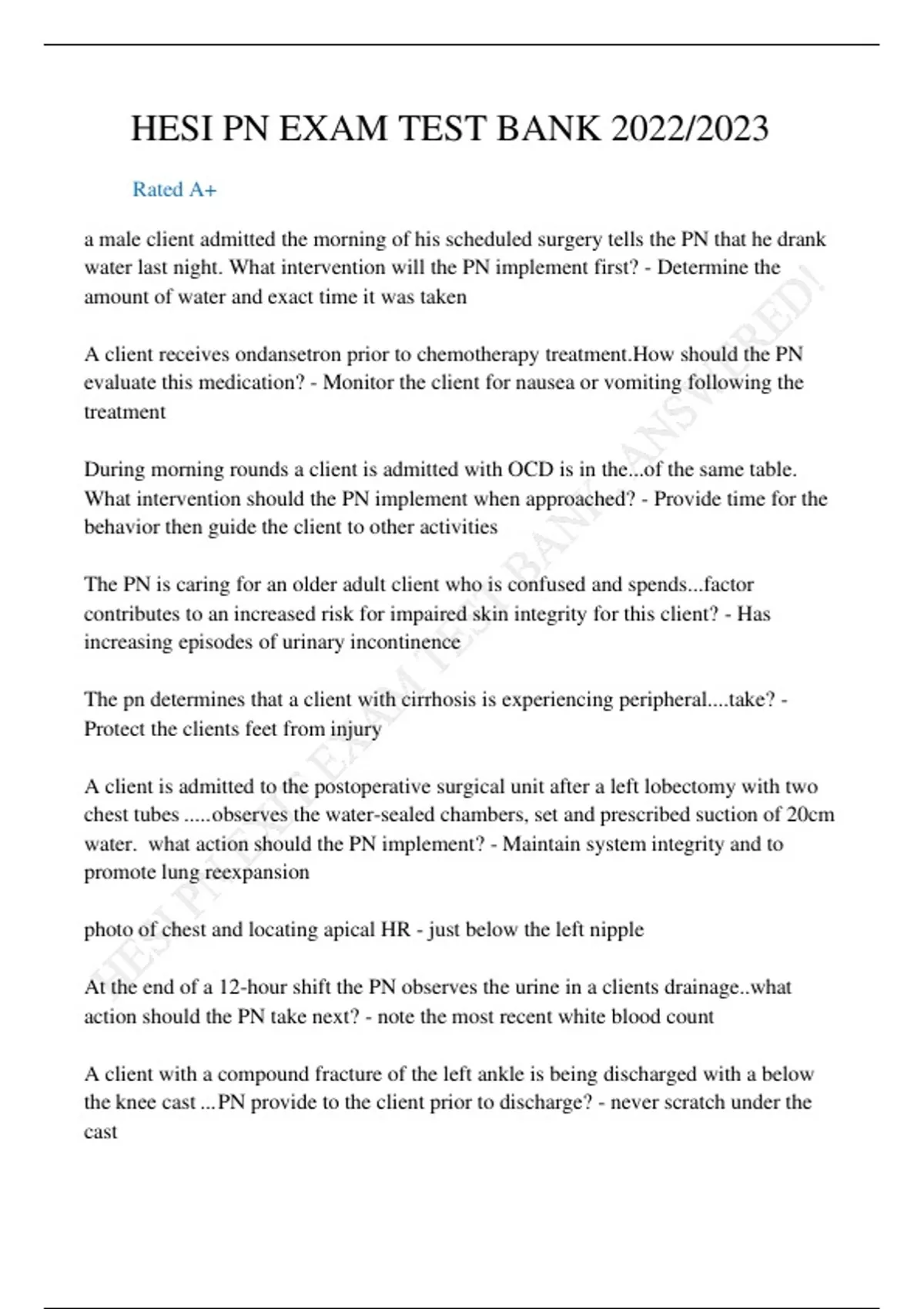 HESI PN EXIT EXAM TEST BANK 2022 /2023 GRADED A+ HESI PN EXIT EXAM TEST BANK 2022 /2023 GRADED A+ HESI PN EXIT EXAM TEST BANK 2022 /2023 GRADED A+