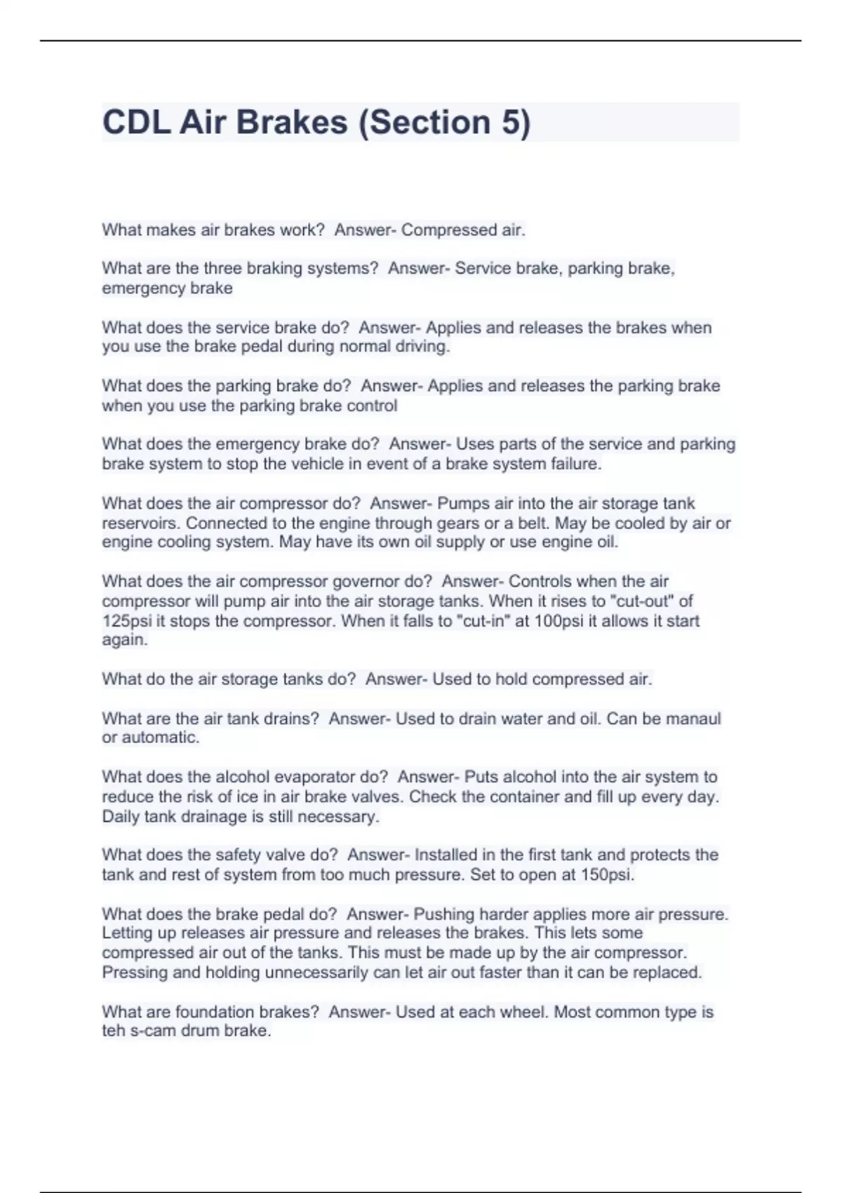 CDL Air Brakes (Section 5)