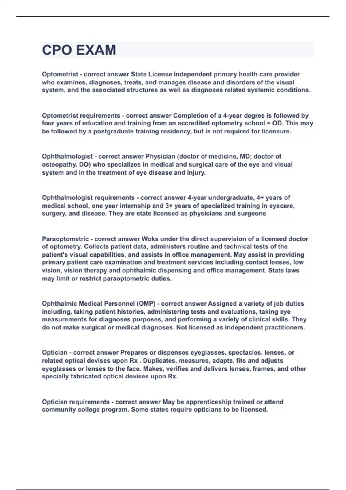 CPO EXAM|UPDATED&VERIFIED|100% SOLVED|GUARANTEED SUCCESS