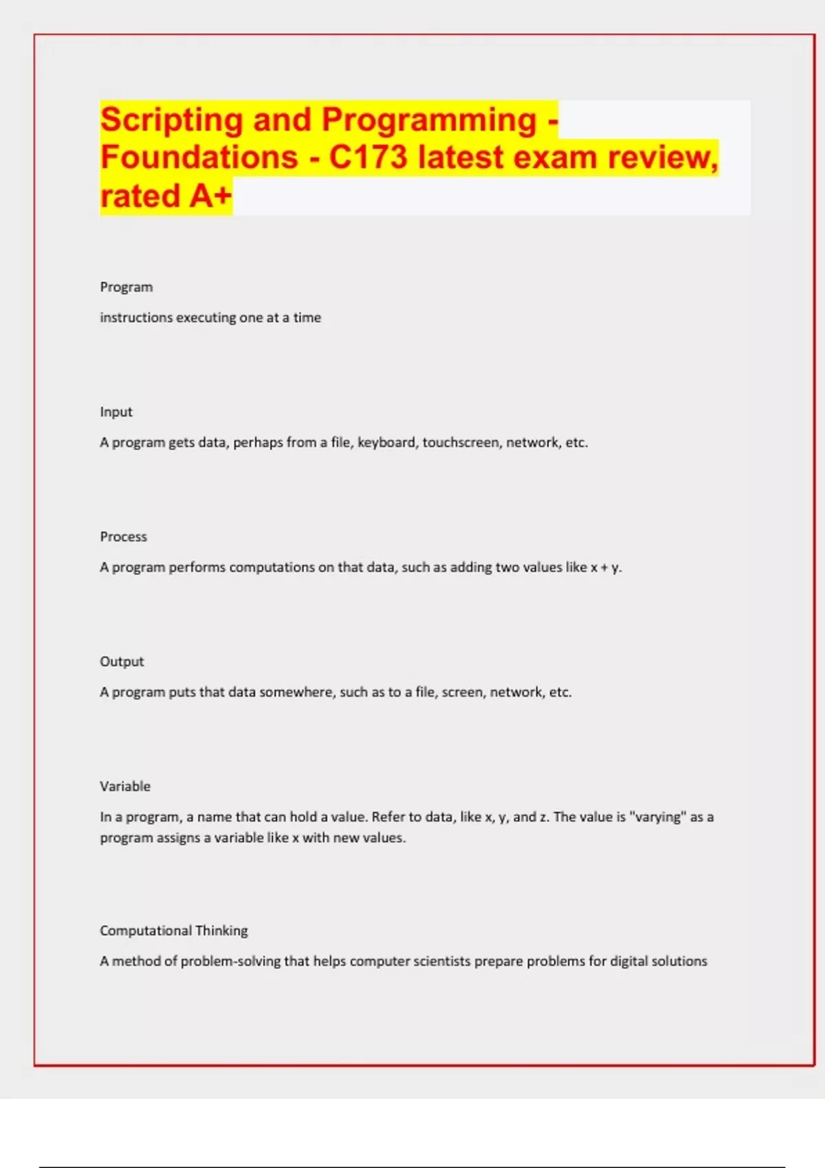 Scripting and Programming - Foundations - C173 latest exam review, rated A+