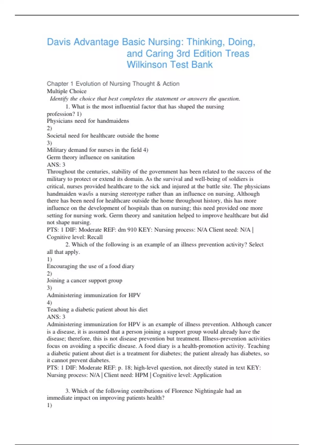 TEST BANK FOR BASIC NURSING TREAS WILKINSON 2 & 3rd EDITION BUNDLE