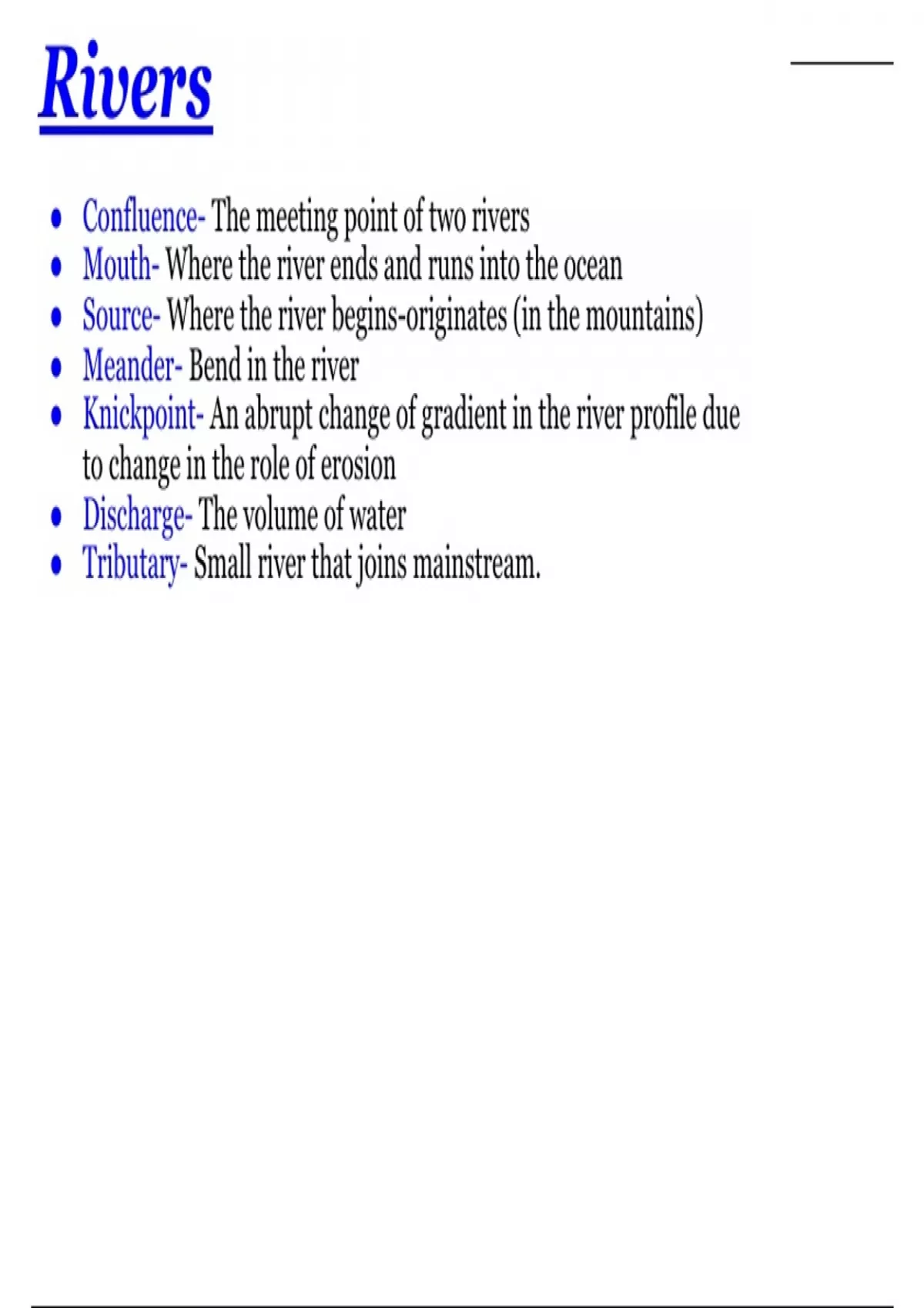 ● Mouth- Where the river ends and runs into the ocean