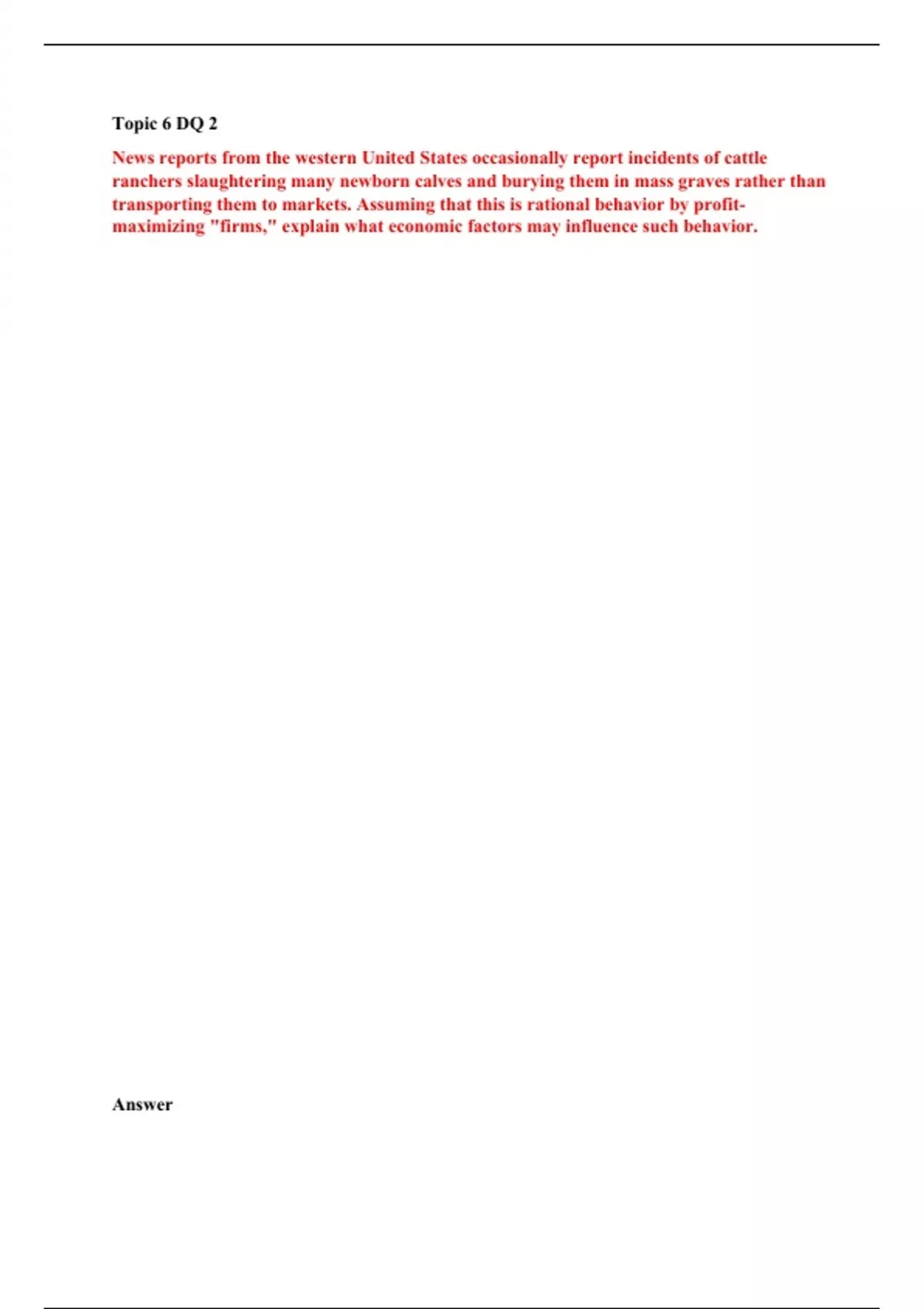 Topic 6 DQ2 News reports from the western United States occasionally report incidents of cattle ranchers slaughtering many newborn calves and burying them in mass graves rather than transporting them to markets. Assuming that this is rational behavior by profit-maximizing "firms," explain what economic factors may influence such behavior.