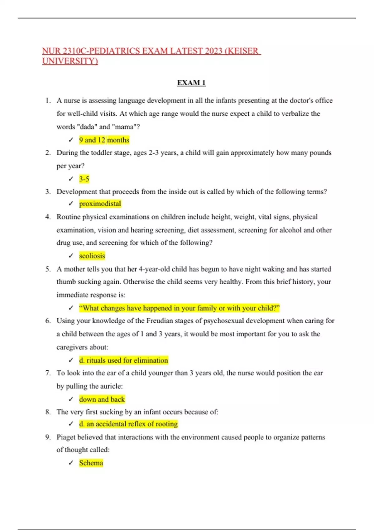 NUR 2310C-PEDIATRICS EXAM LATEST 2023 (KEISER UNIVERSITY)