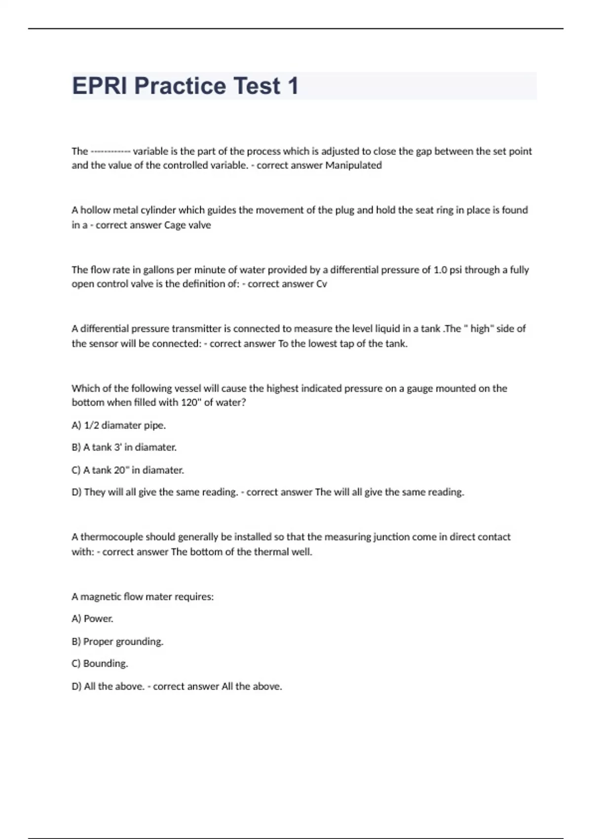 EPRI Practice Test 1