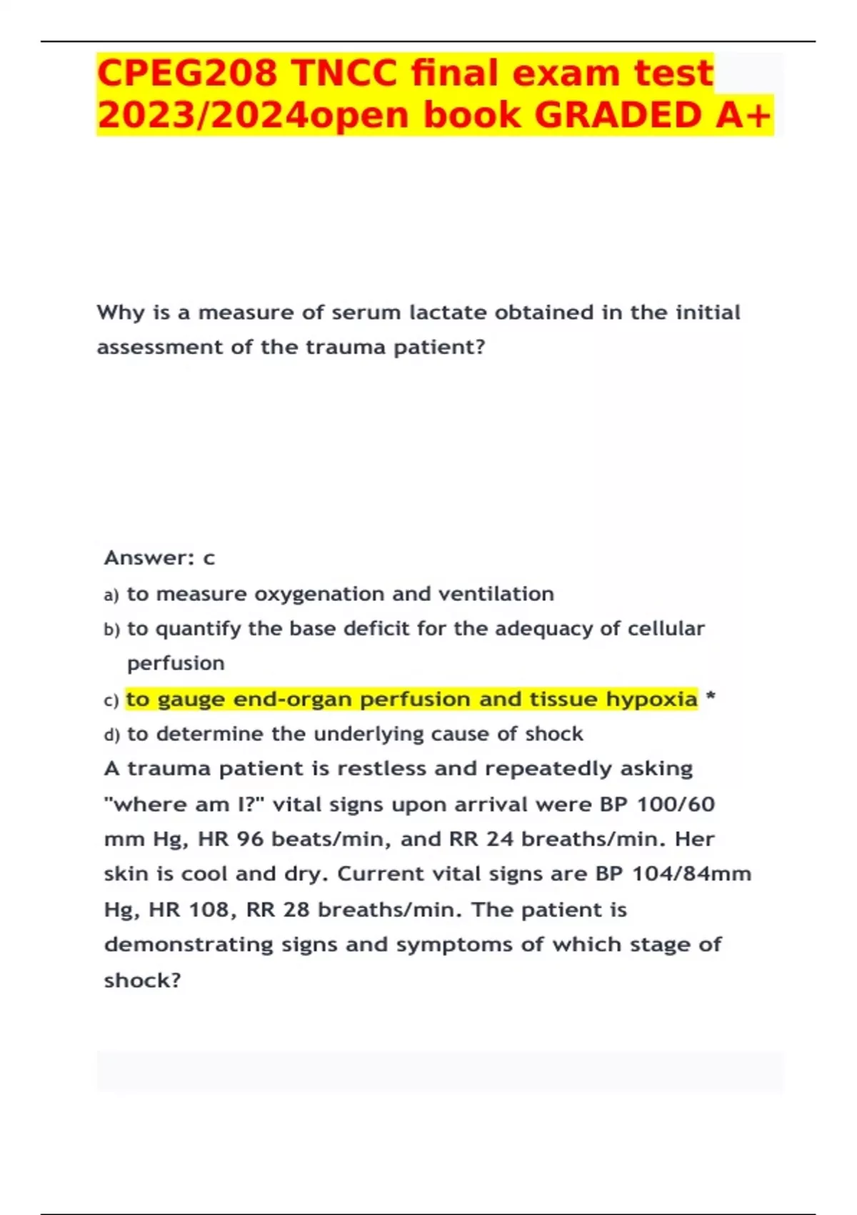 CPEG208 TNCC final exam test 2023/2024open book GRADED A+